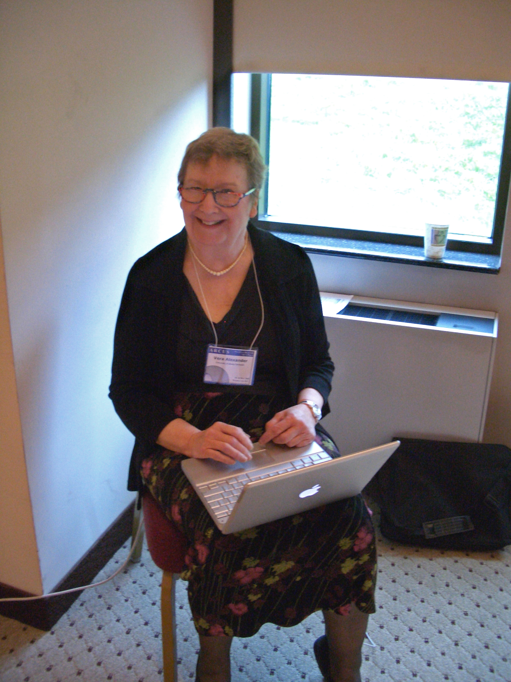 Vera Alexander, President of the ARCUS Board of Directors, takes a moment from working for a photo opprotunity.