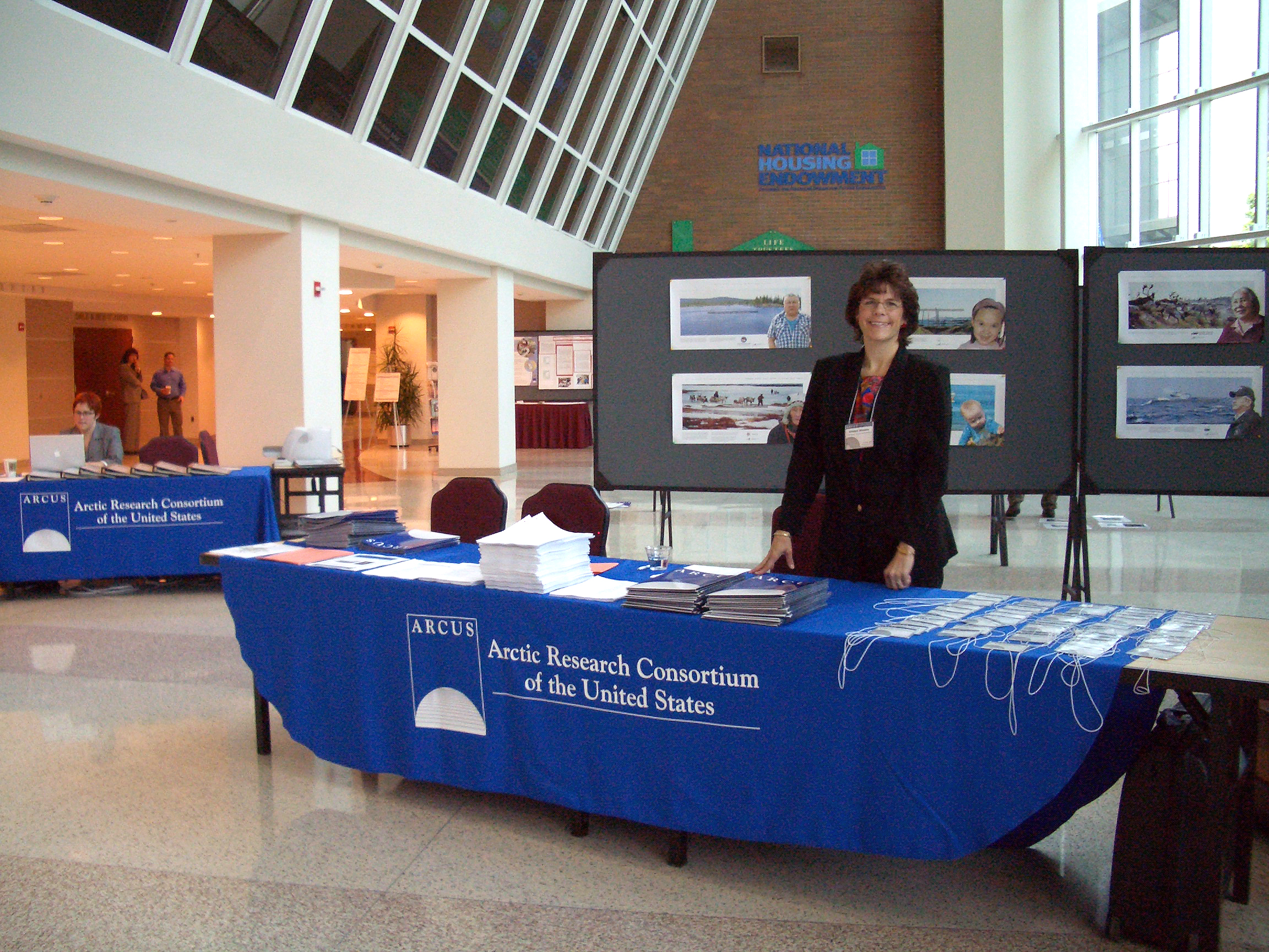 ARCUS business manager Kristen Winters at the registration desk. Arctic Forum 2005.
