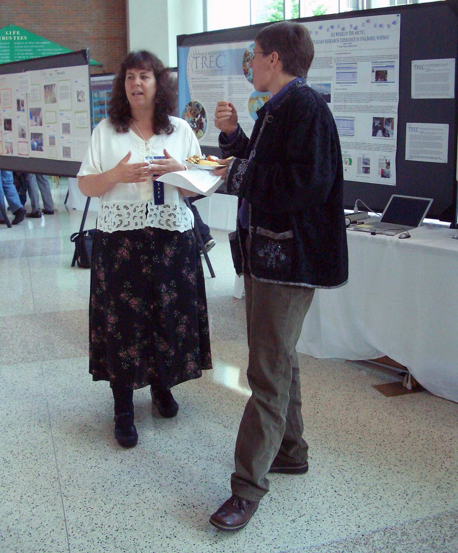 ARCUS staff member Janet Warburton and a 2006 Arctic Forum participant talk.