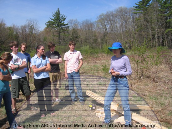 Teacher Tom Crumrines students and their research plots as seen by Arctic Visiting Speaker Syndonia Bret-Harte during her May 2006 visit to Concord High School in New Hampshire.