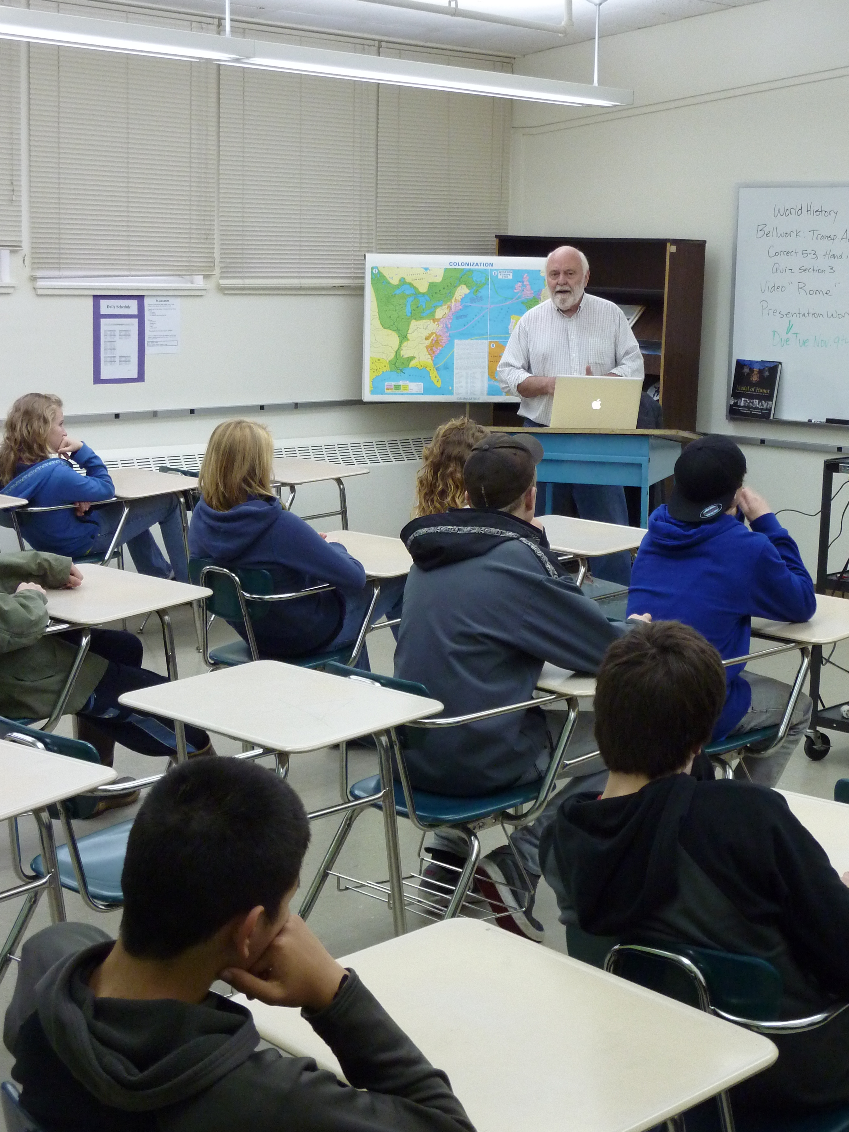 Dr. Robert McGhee speaks during his AVS visit with Cordova middle and high school students in Cordova, Alaska.