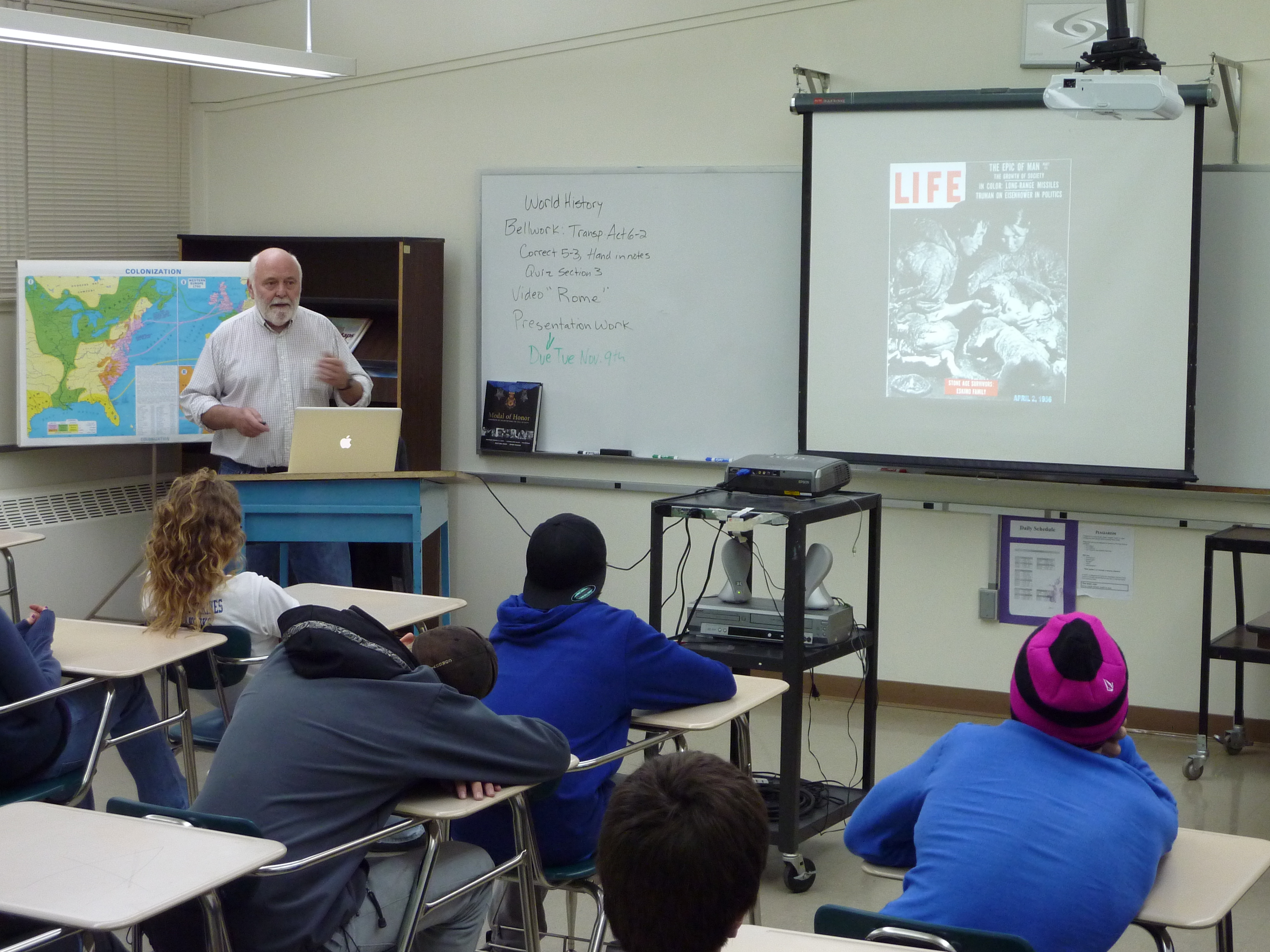 Dr. Robert McGhee speaks during his AVS visit with Cordova middle and high school students in Cordova, Alaska.