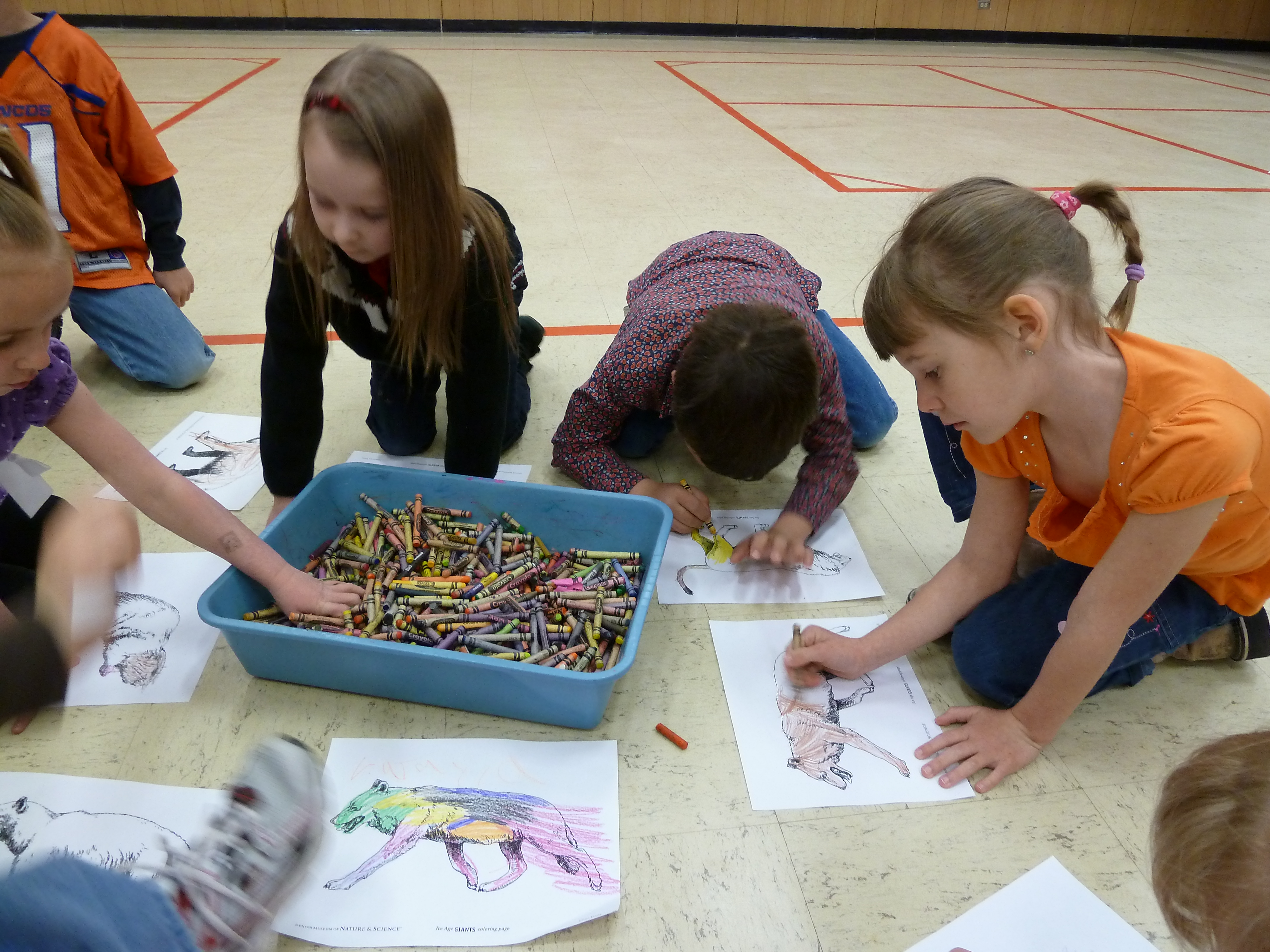 Allen Marquette speaks to students at Challis Elementary in Challis, Idaho.