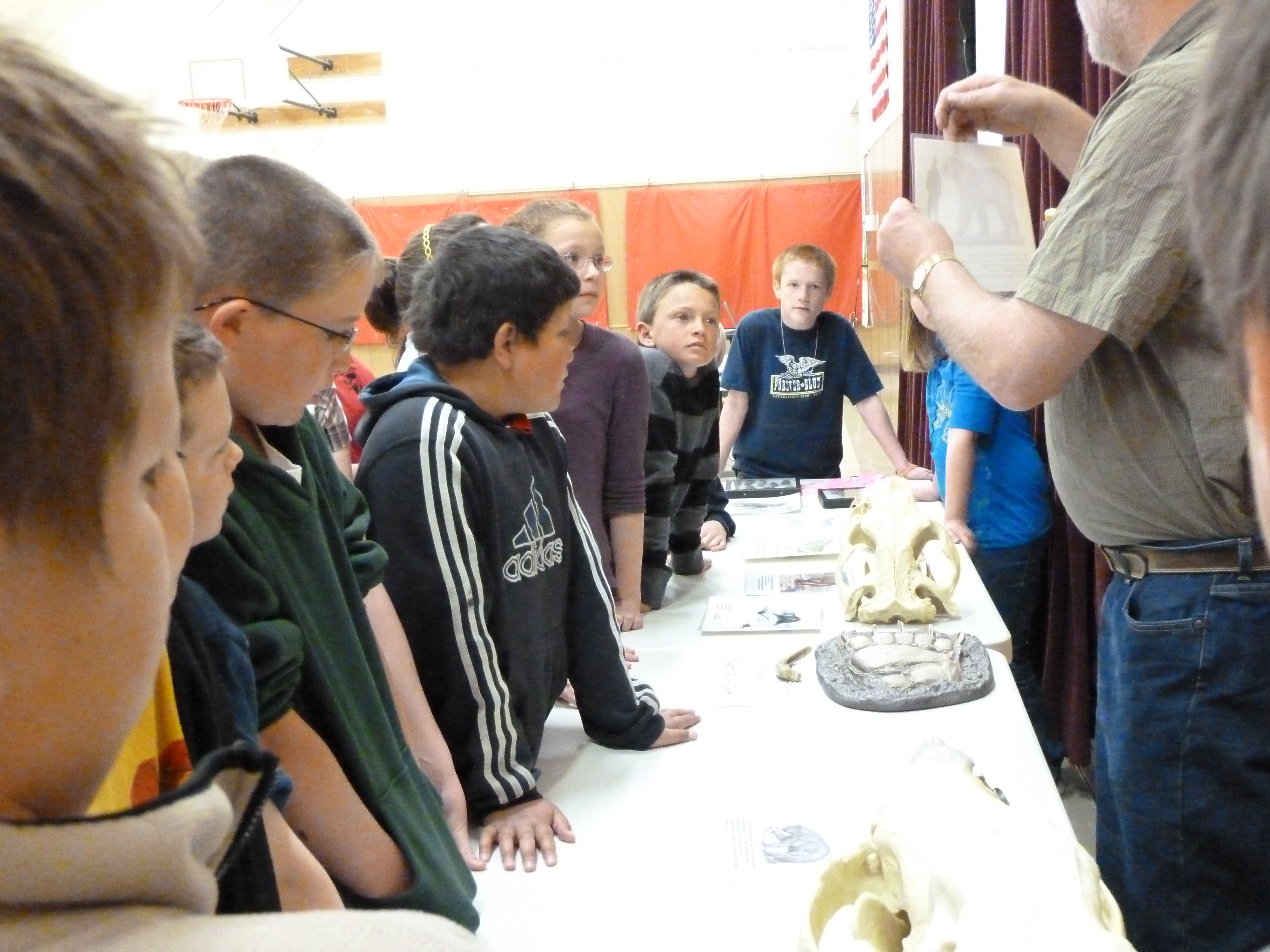 Allen Marquette speaks to students at Challis Elementary in Challis, Idaho.