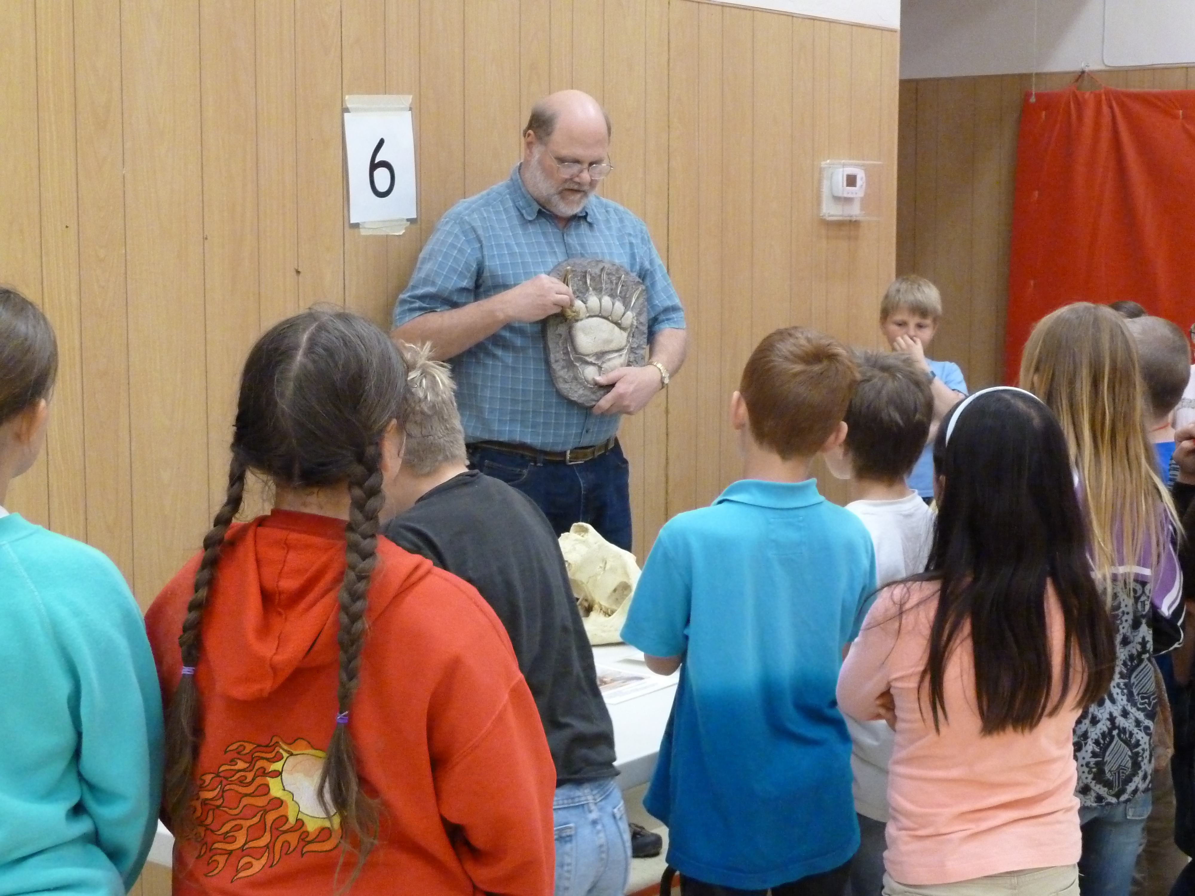 Allen Marquette speaks to students at Challis Elementary in Challis, Idaho.