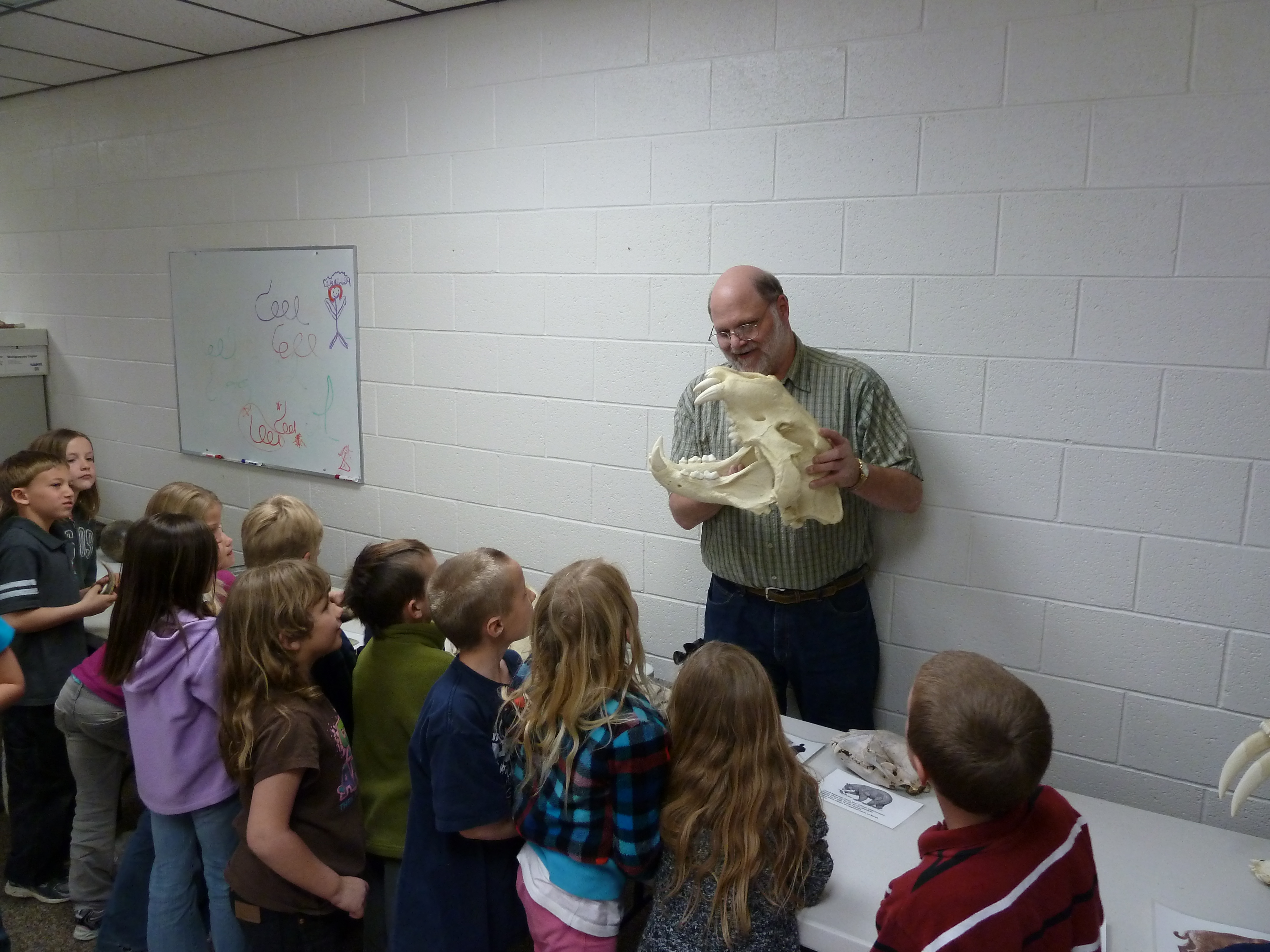 Allen Marquette speaks to students at Challis Elementary in Challis, Idaho.
