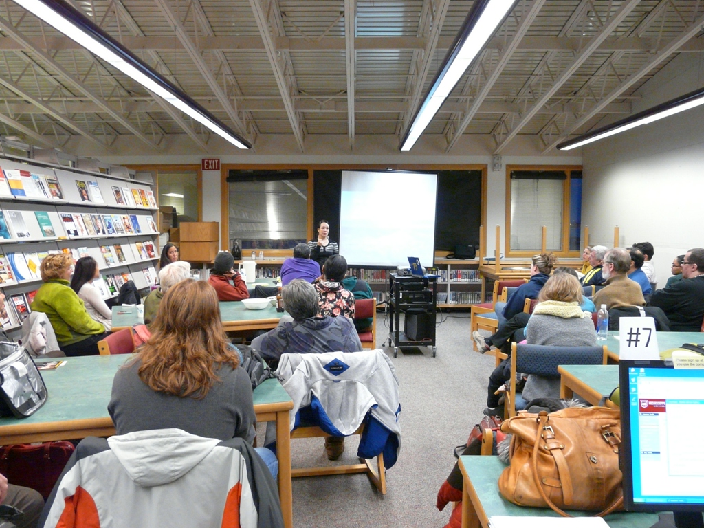 Aviâja Egede Lynge gives her presentation at Ilisagvik College in Barrow, Alaska.