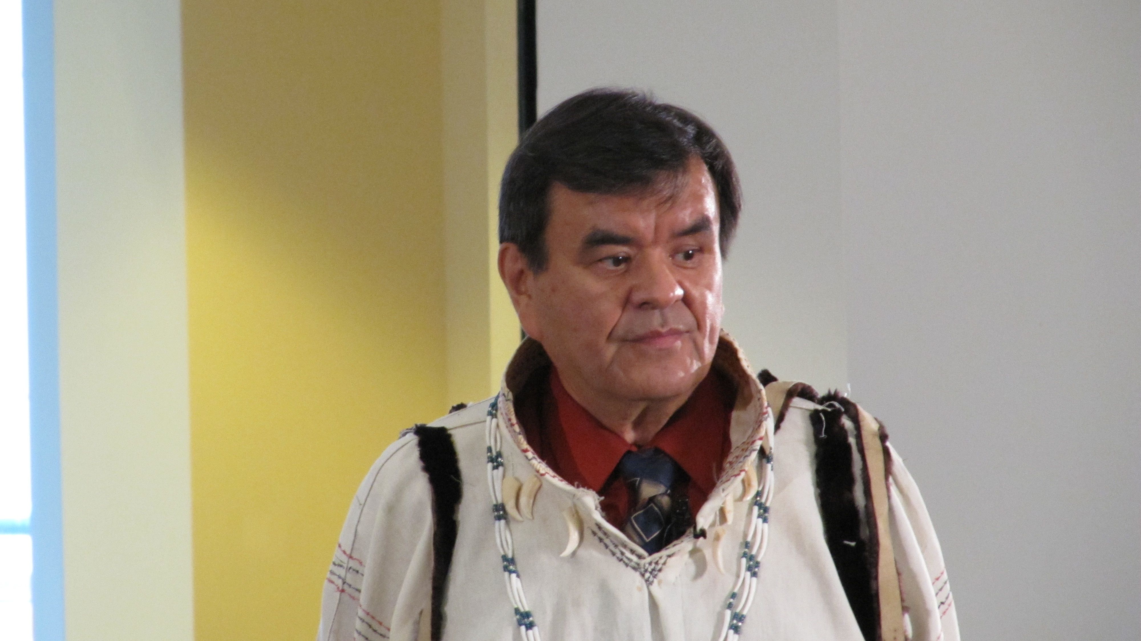 Larry Merculieff before the campus presentation. Western Oregon University in Monmouth, Oregon.