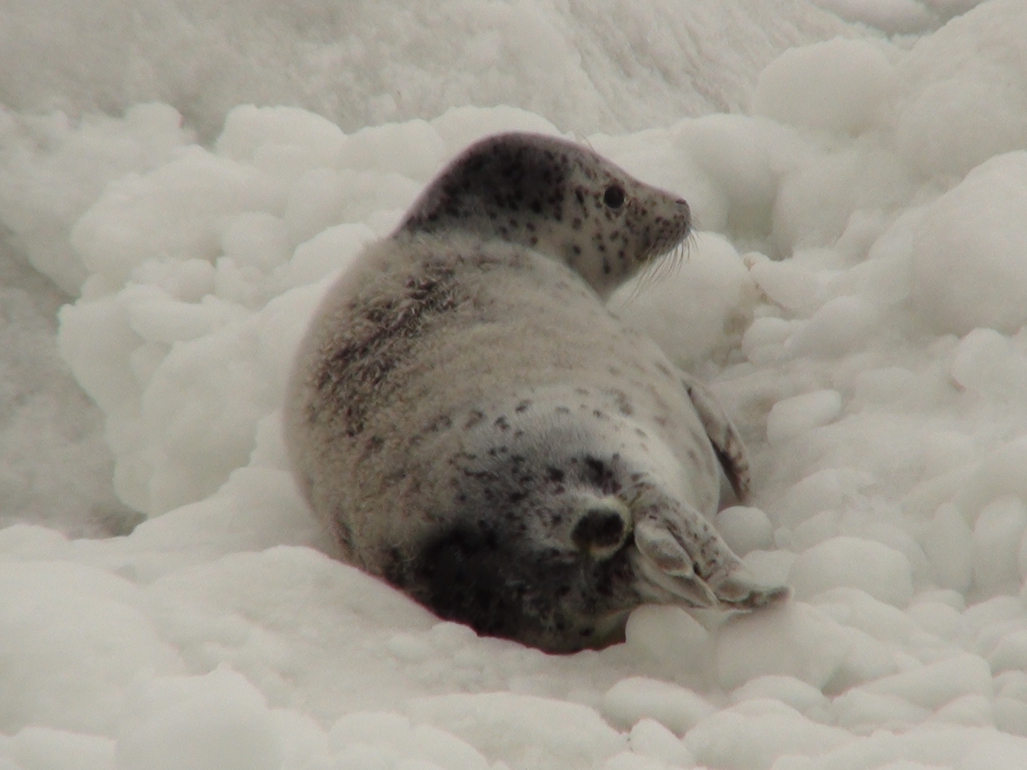 Several seals were observed resting on the calmed sea ice platform. Michelle Ridgway visits St. Pribilof School District for Bering Sea Days festivities on St. Paul Island, Alaska.