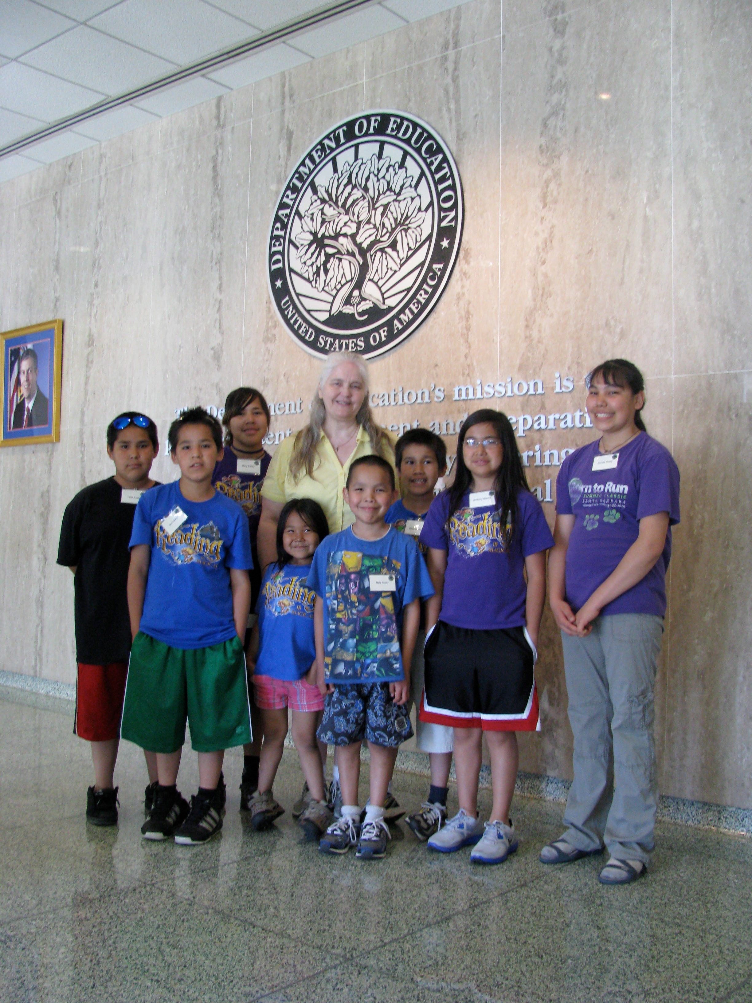 Teacher Debra Rubera and her students visit the Department of Education Building in Washington, DC.