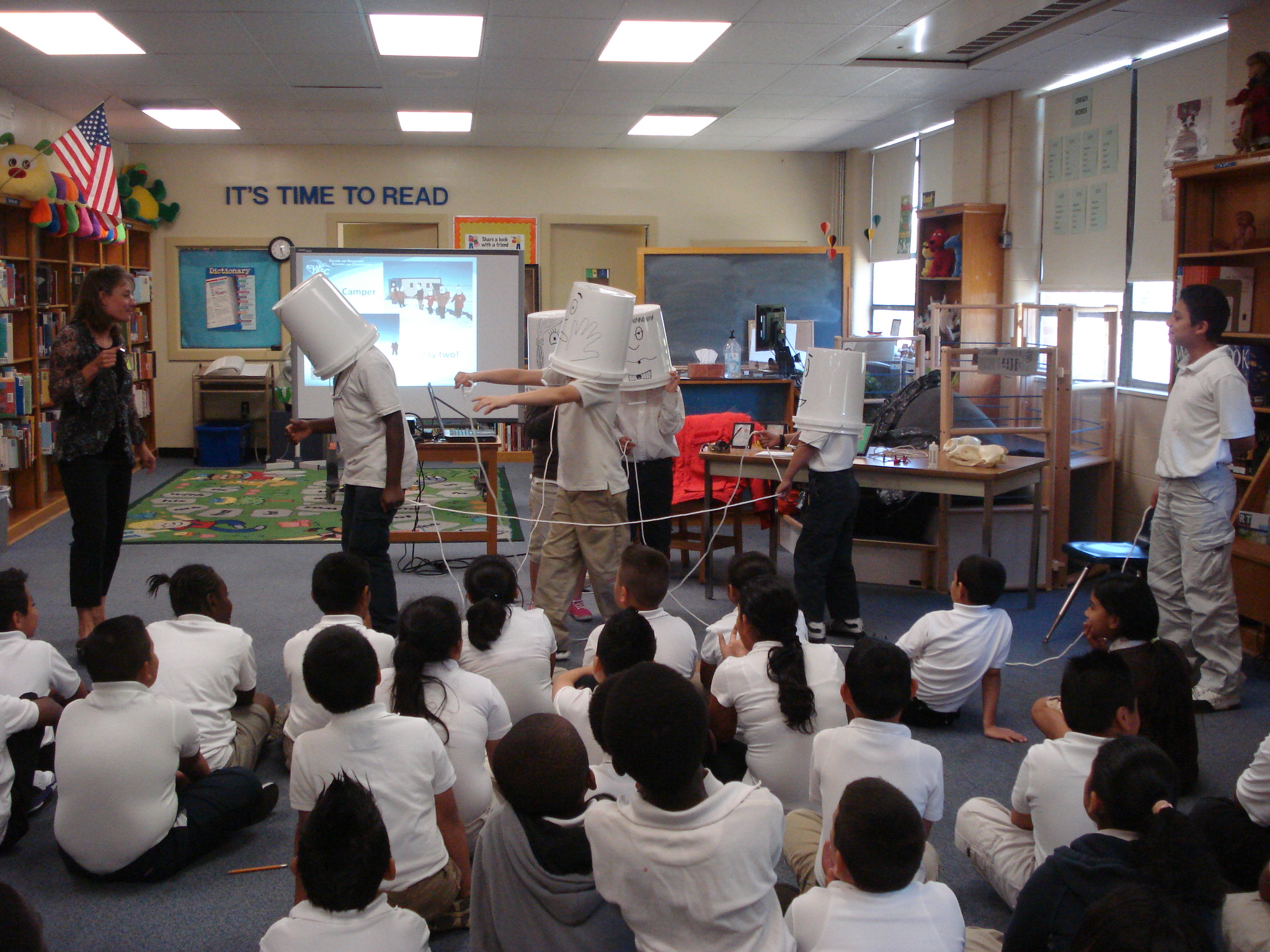Students participate in an Antarctic training activity called 'Bucket Heads' which simulates whiteout conditions in Antarctica. At Campus School in Memphis, Tennessee.