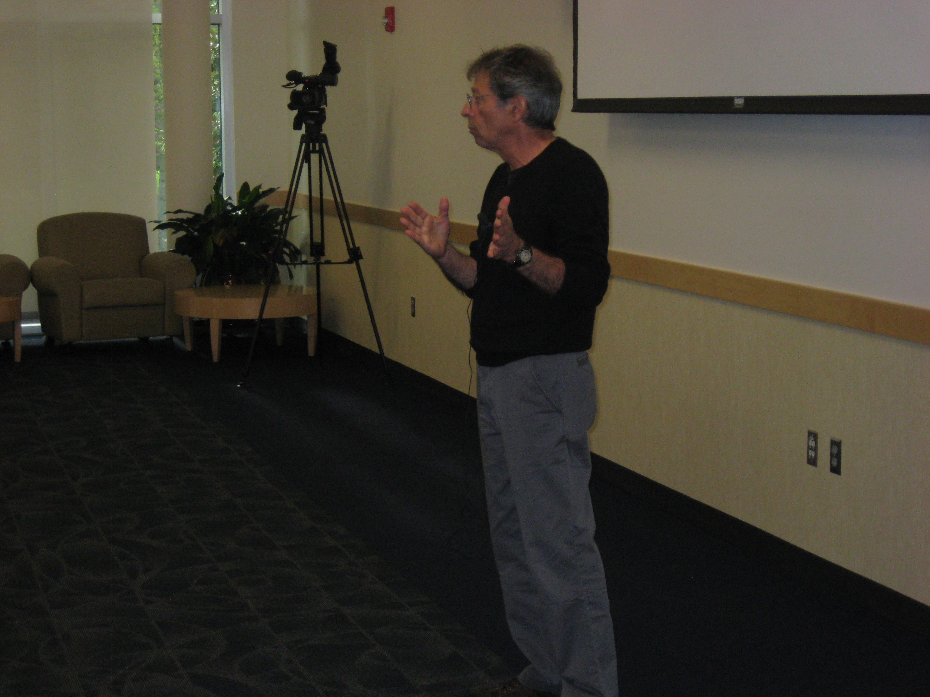 Leonard Kamerling introduces his film “Drums of Winter” during a screening at Western Oregon University in Monmouth, Oregon.