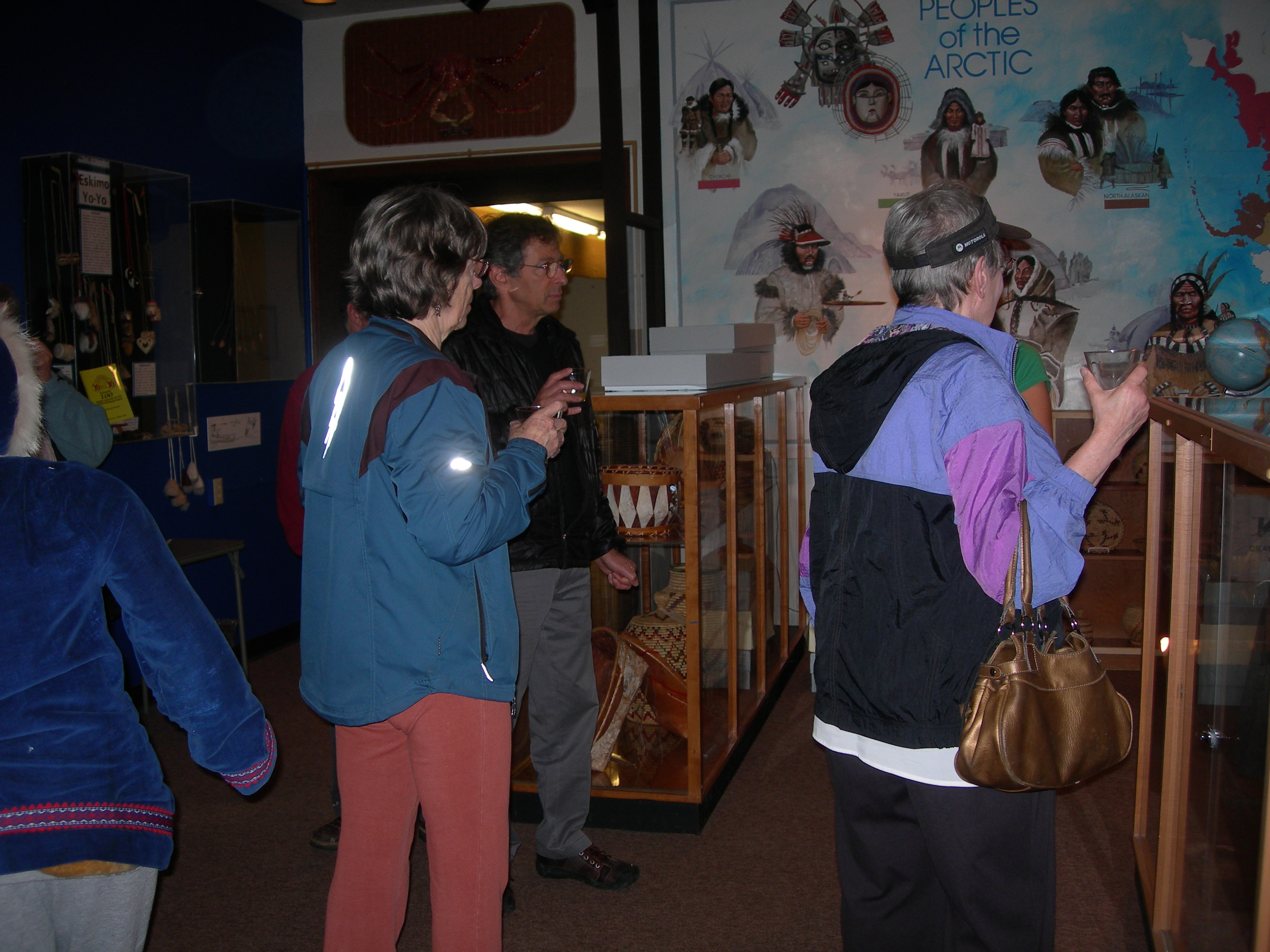 Leonard Kamerling (center) visits with guests during an open house at the Jensen Arctic Museum at Western Oregon University in Monmouth, Oregon.