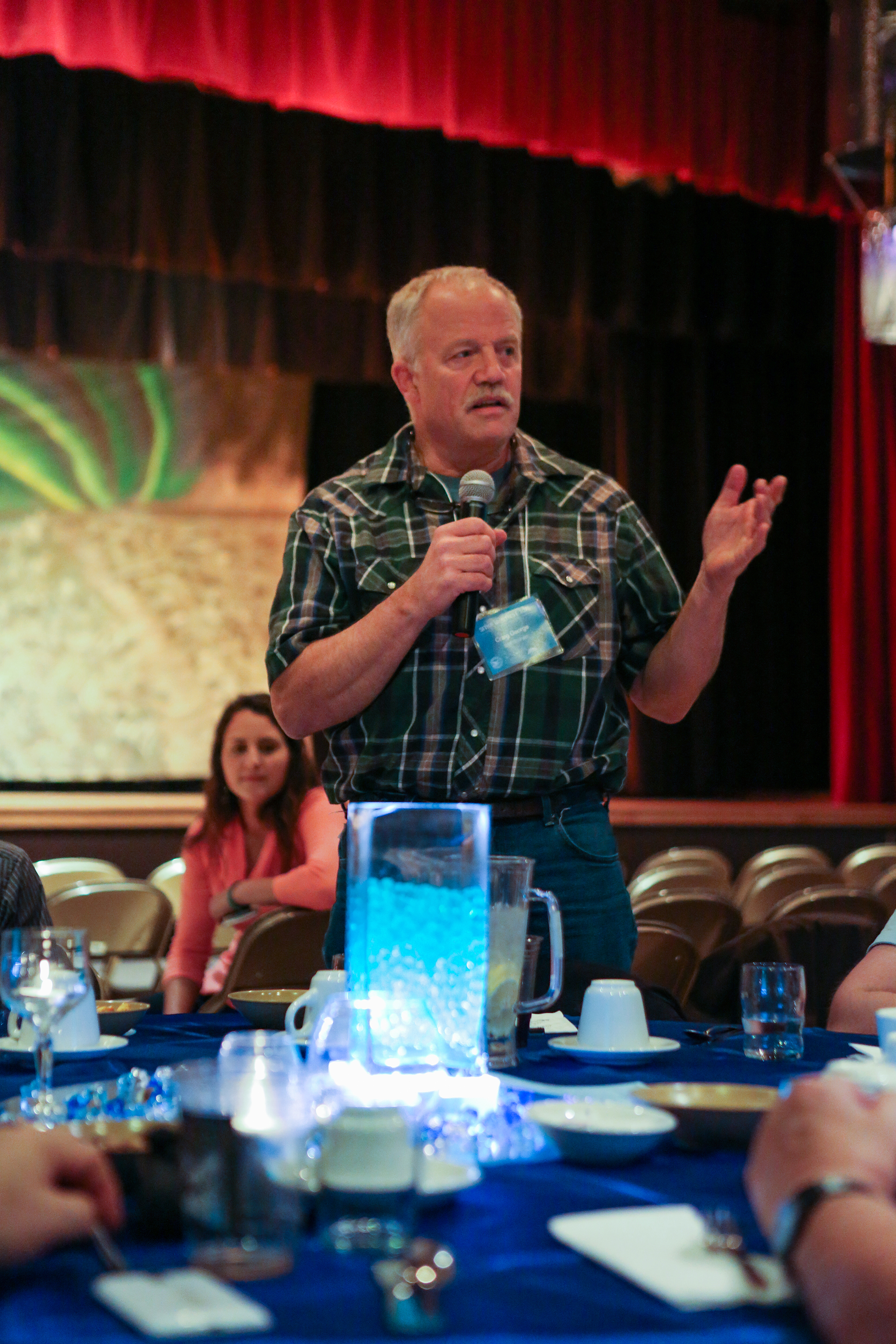 Craig George speaks at the Sitka WhaleFest banquet. Sitka, Alaska.