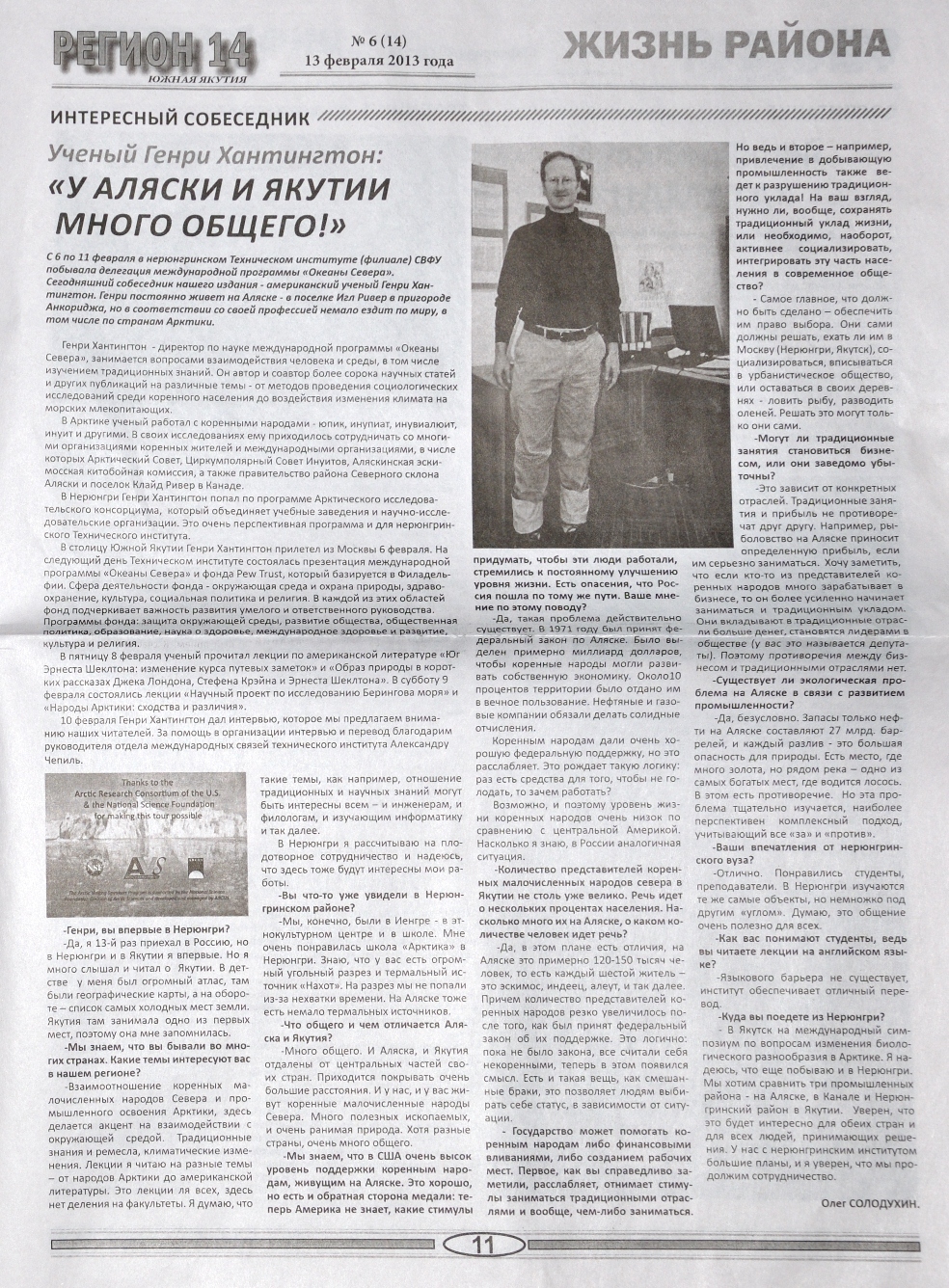 Henry Huntington's visit made it into the local paper in Neryungri, Russia.