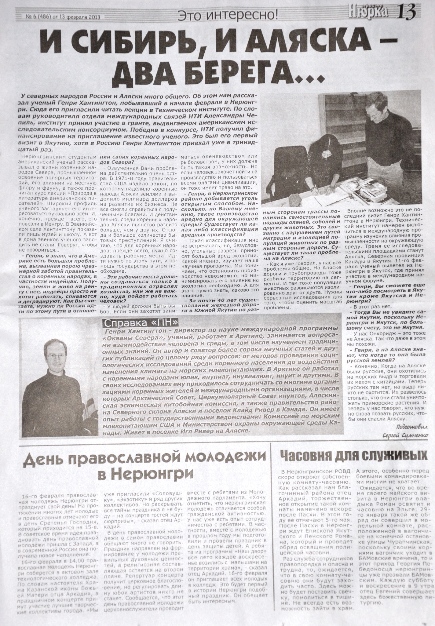 Henry Huntington's visit made it into the local paper in Neryungri, Russia.