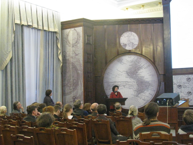 Sarah Hurst presents at the Russian Geographical Society. St. Petersburg, Russia.