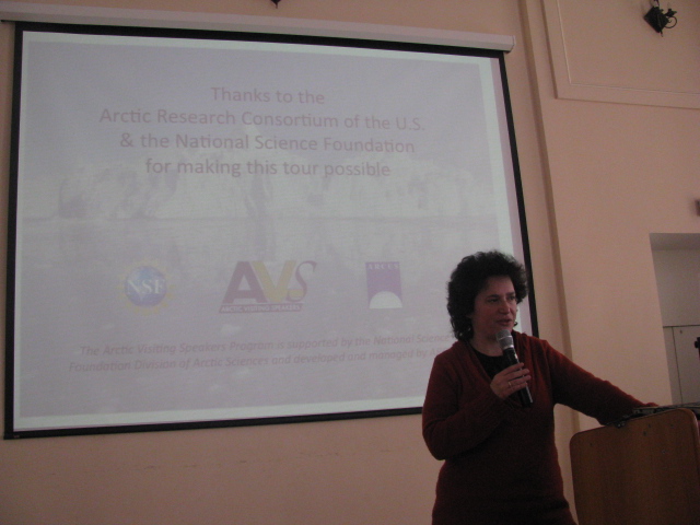 Sarah Hurst gives her presentation at St. Petersburg State University, St. Petersburg, Russia.