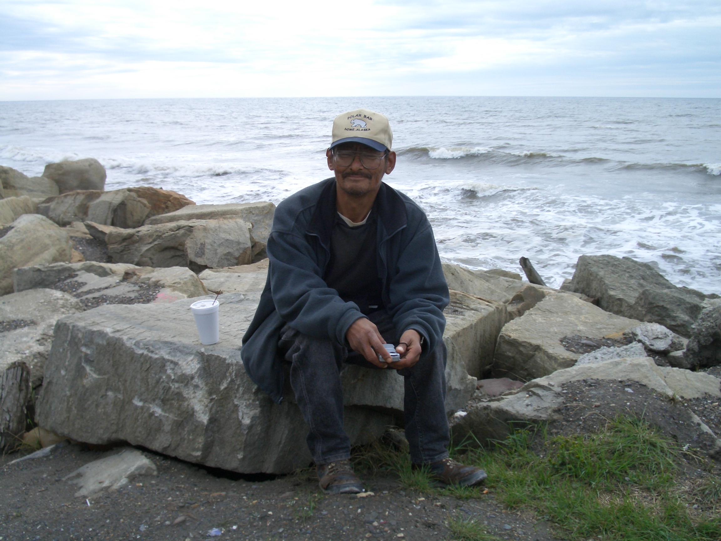 Frank sitting on the sea wall in Nome, AK listening to the radio.