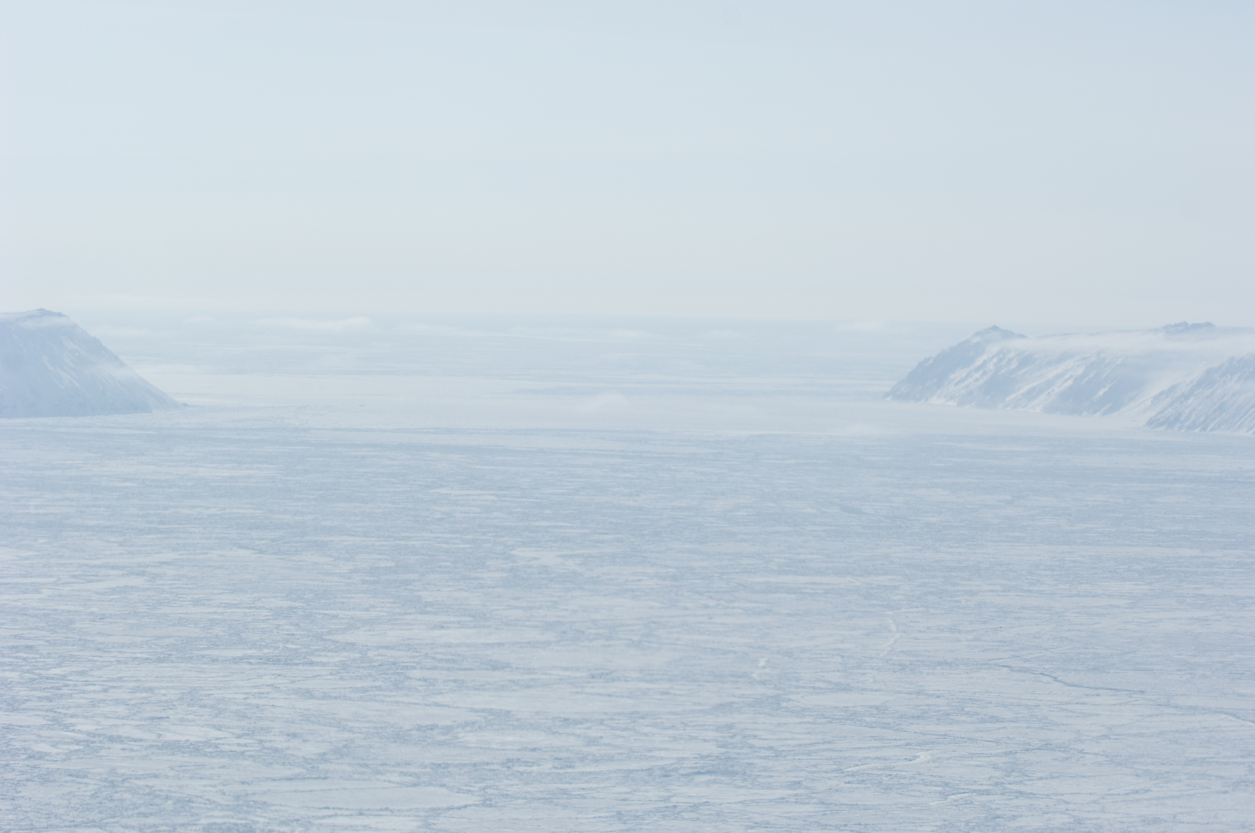 The Diomede Islands seen during the April 2006 US Fish and Wildlife Service (USFWS) Walrus Survey in the Bering Sea.