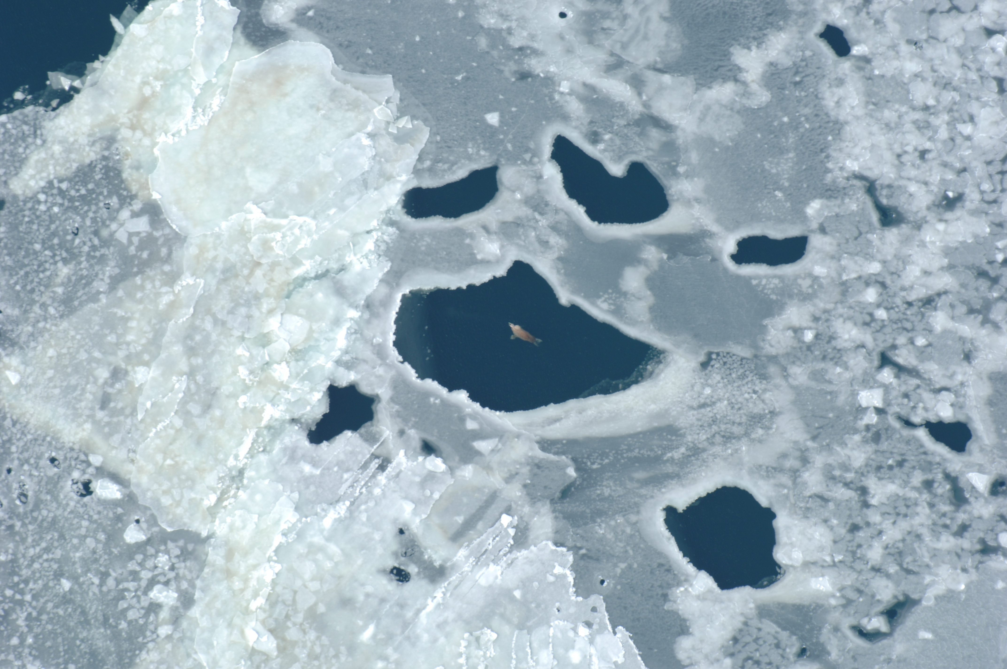 A walrus (*Odobenus rosmarus*) swimming in the the Bering Sea, seen during the April 2006 US Fish and Wildlife Service (USFWS) Walrus Survey.