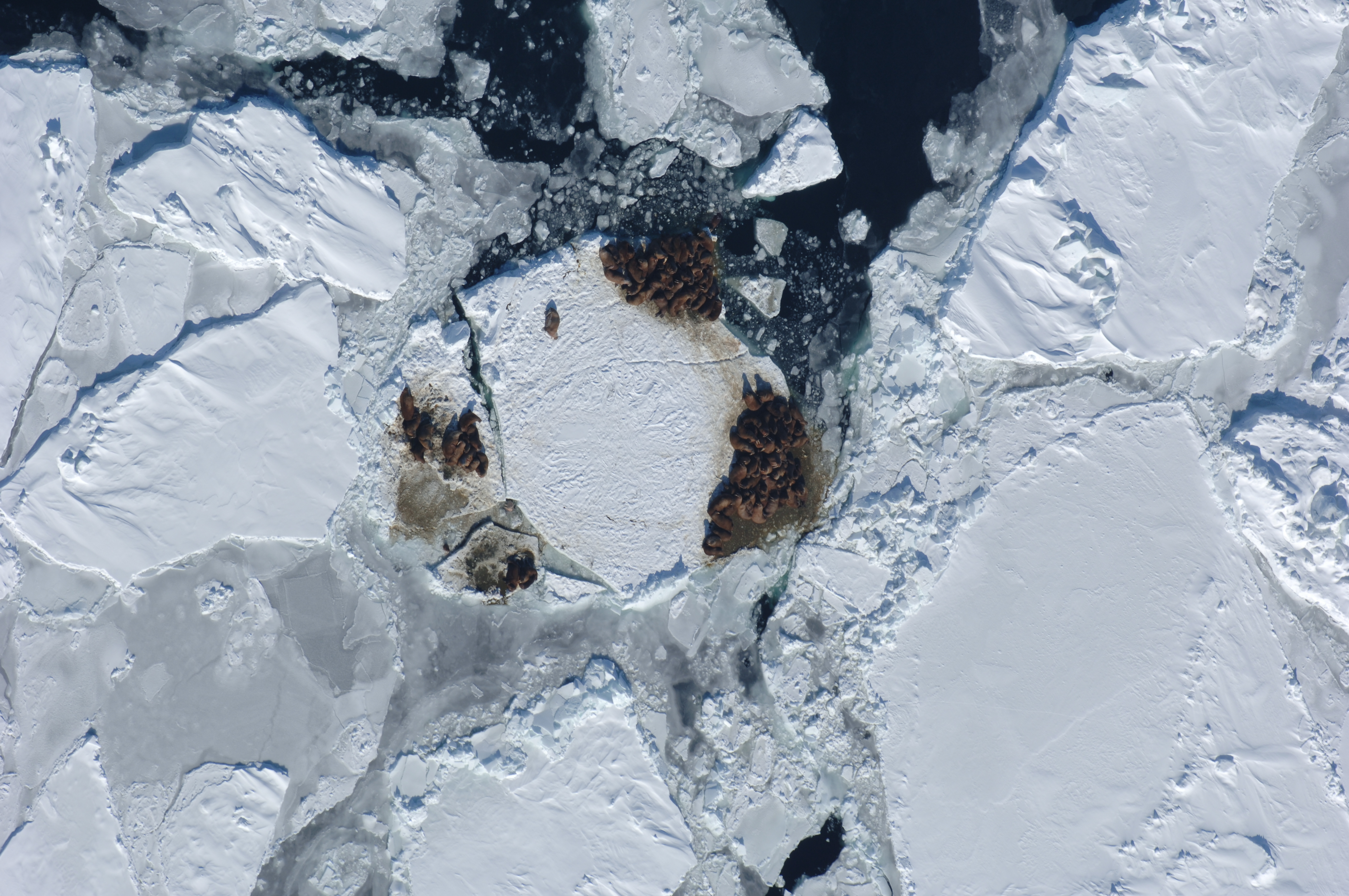 Walrus (*Odobenus rosmarus*) hauled out on the ice of the Bering Sea, seen during the April 2006 US Fish and Wildlife Service (USFWS) Walrus Survey.