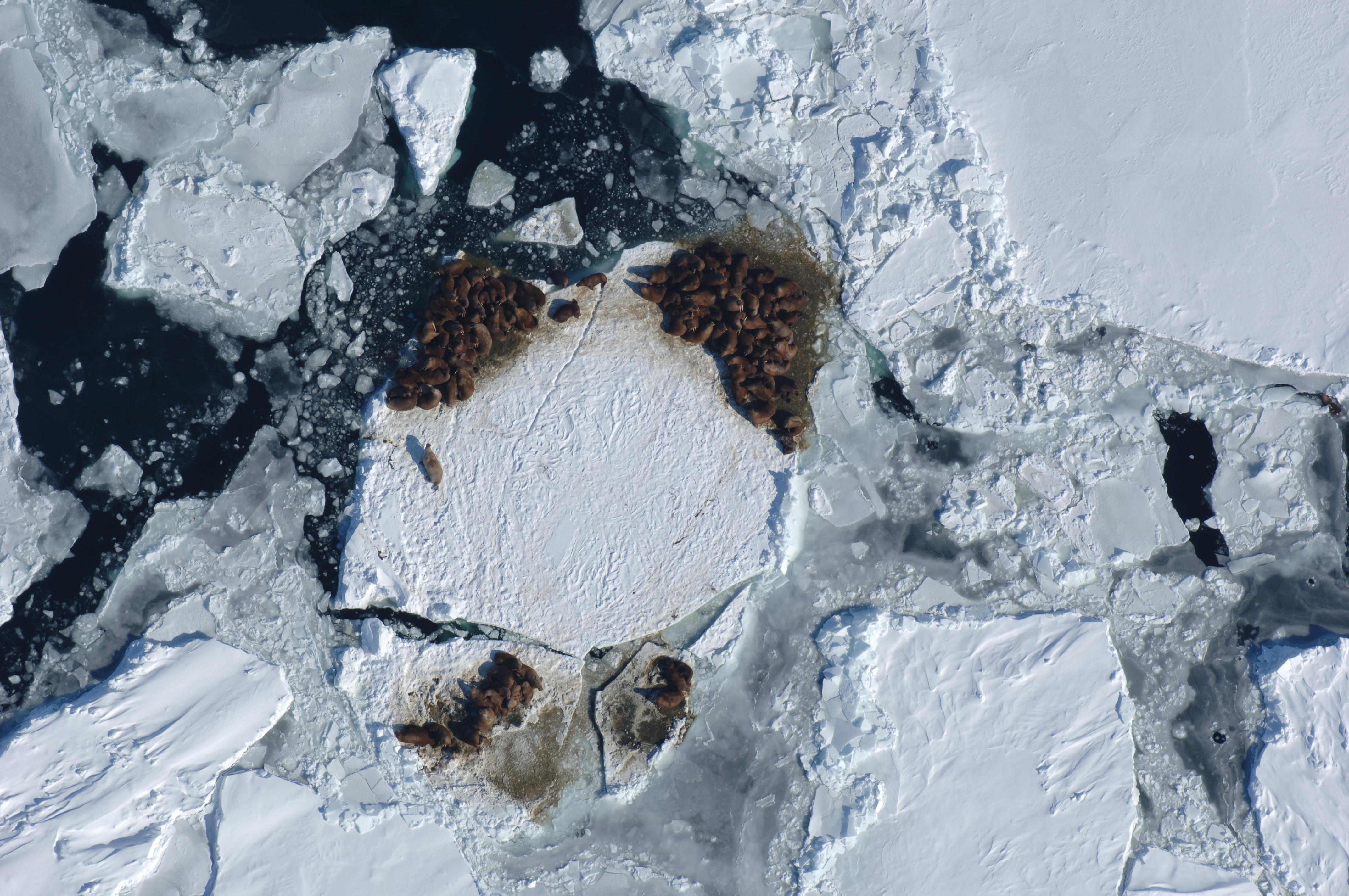 Walrus (*Odobenus rosmarus*) hauled out on the ice of the Bering Sea, seen during the April 2006 US Fish and Wildlife Service (USFWS) Walrus Survey.