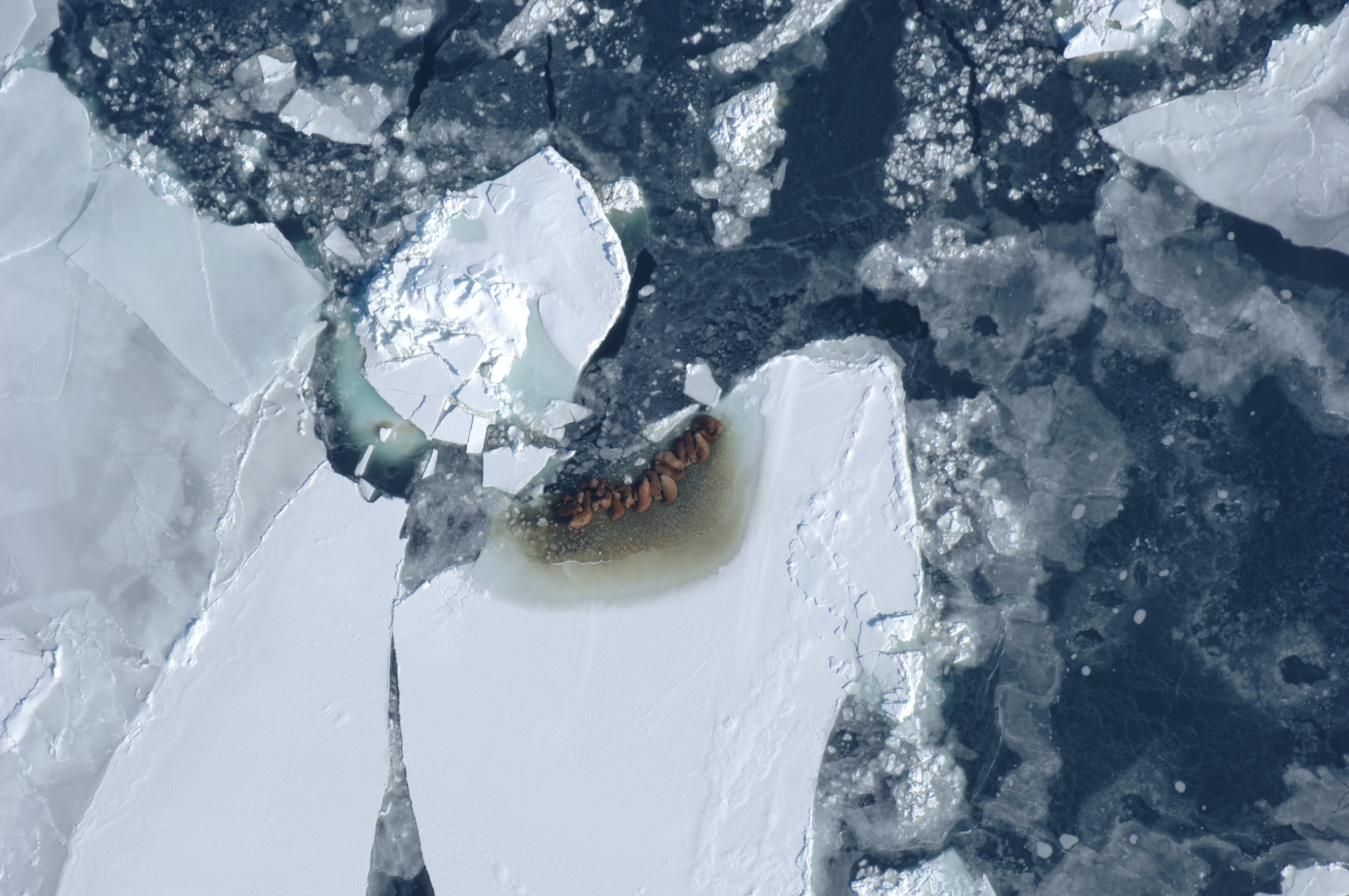 Walrus (*Odobenus rosmarus*) hauled out on the ice of the Bering Sea, seen during the April 2006 US Fish and Wildlife Service (USFWS) Walrus Survey.