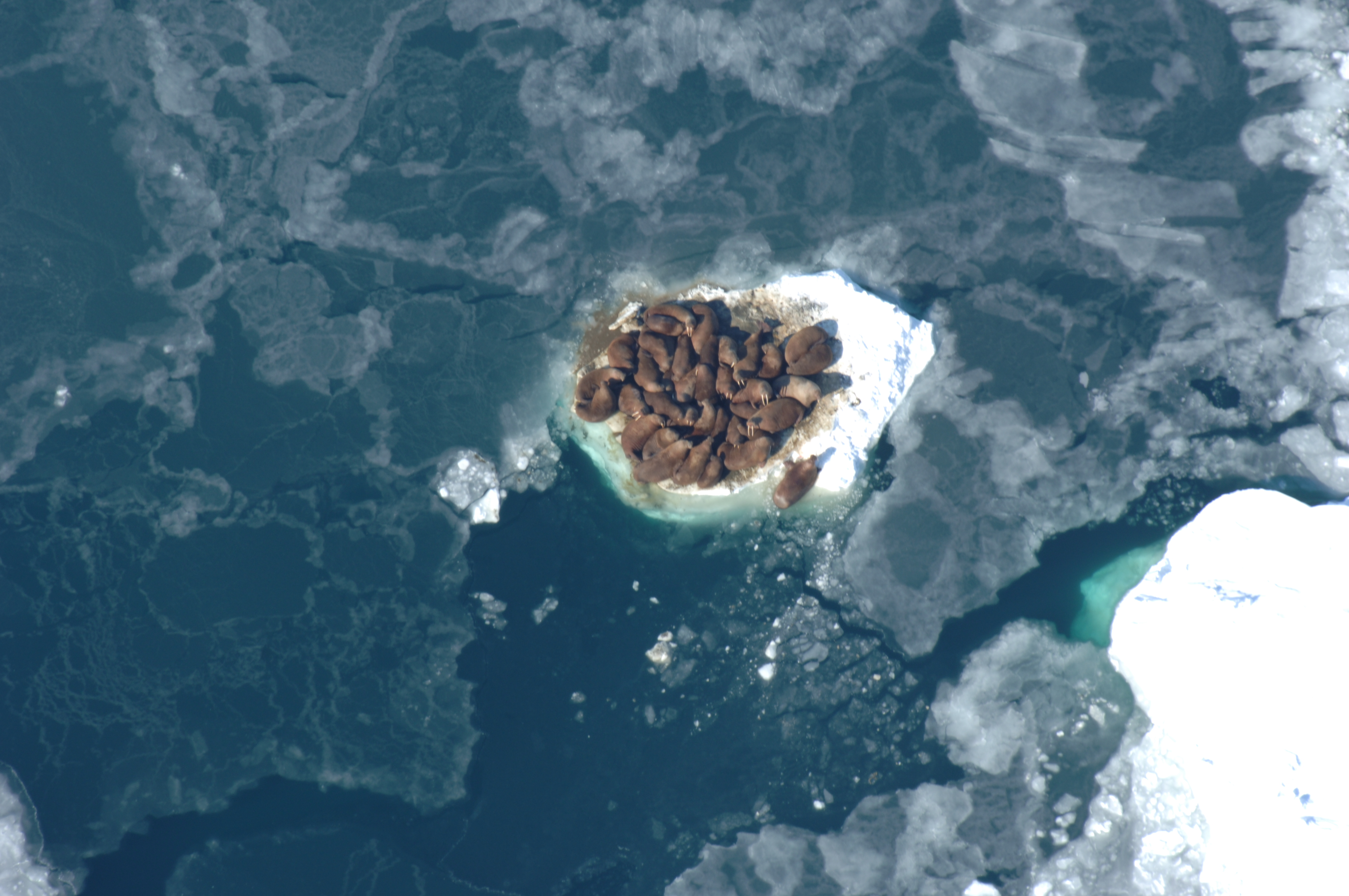 Walrus (*Odobenus rosmarus*) hauled out on the ice of the Bering Sea, seen during the April 2006 US Fish and Wildlife Service (USFWS) Walrus Survey.