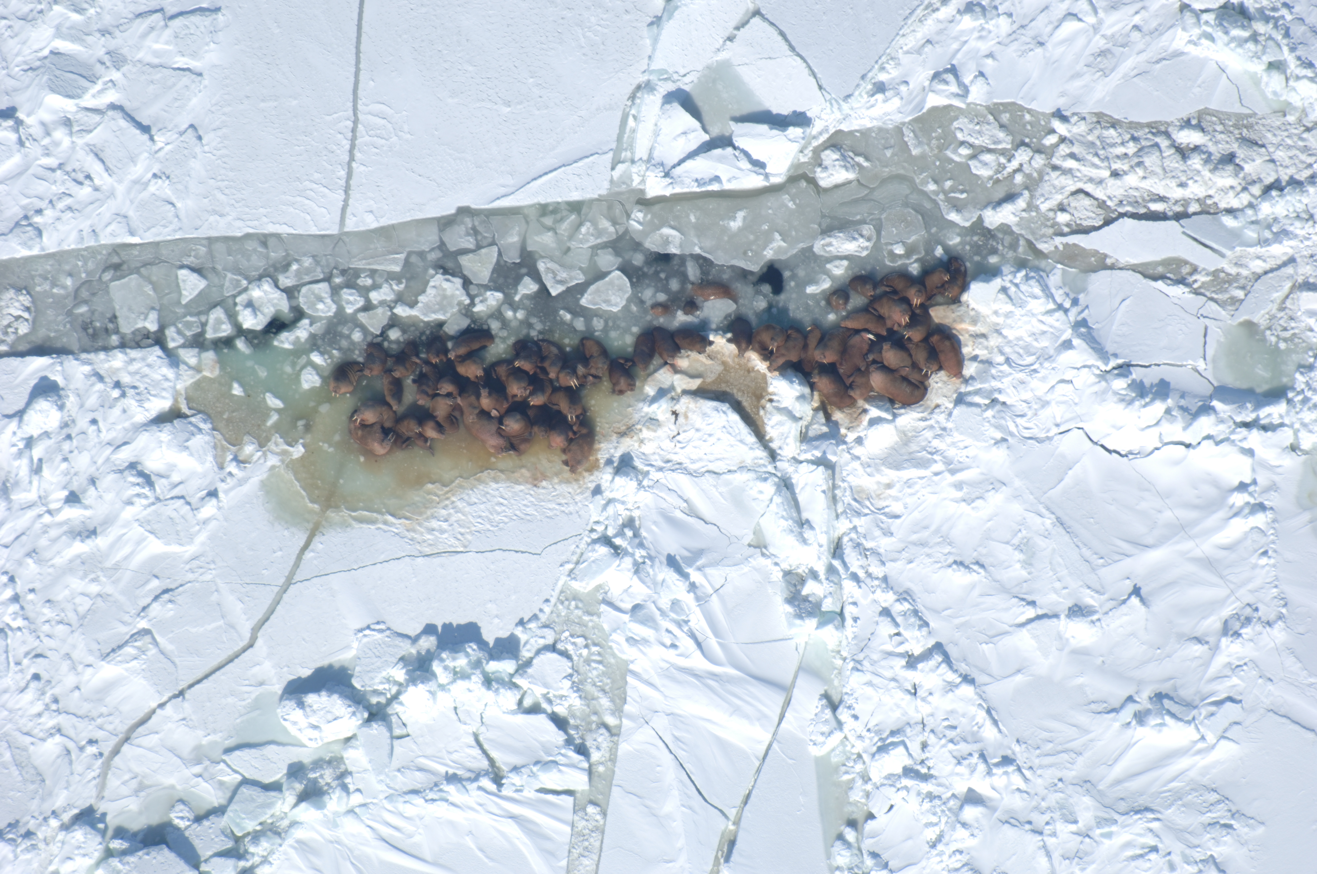 Walrus (*Odobenus rosmarus*) hauled out on the ice of the Bering Sea, seen during the April 2006 US Fish and Wildlife Service (USFWS) Walrus Survey.