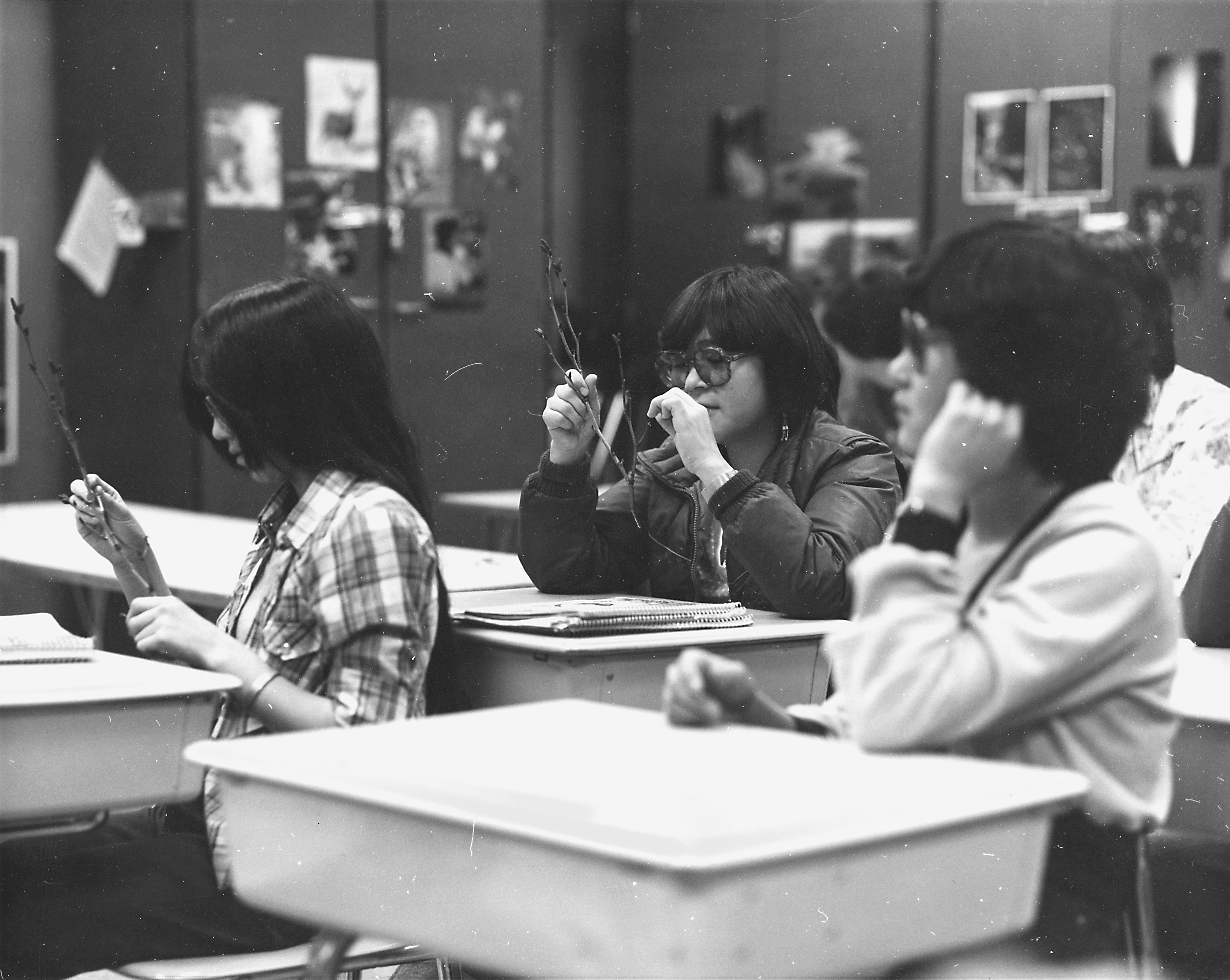 Yup'ik eskimo students in a lower Yukon River school study characteristics of plants near their community. (Photo by D. Klein)