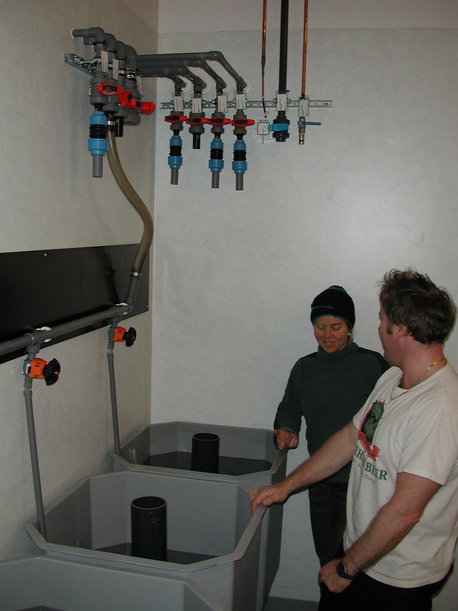 Arve and Anette test the equipment at the Arctic Marine Laboratory, Svalbard, Norway.