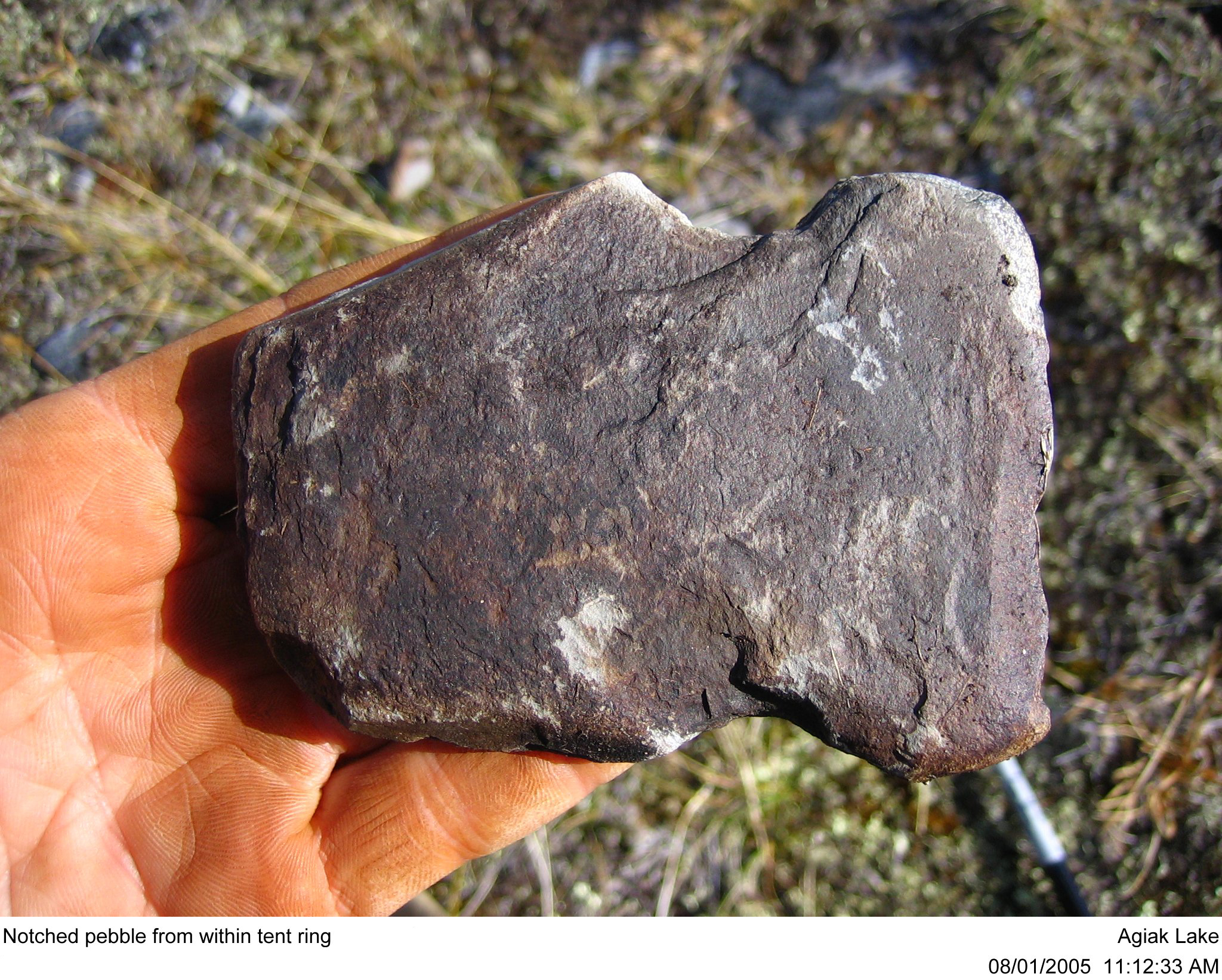 Notched pebble from within tent ring B, site XCL-118.