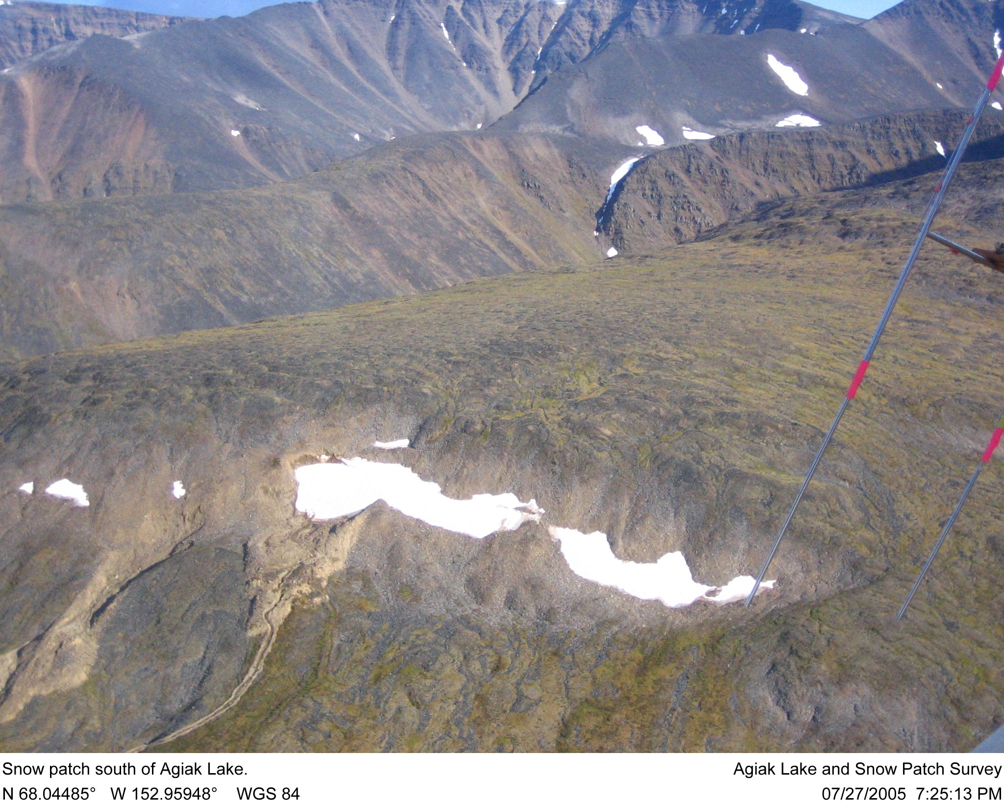 A snow patch in Gates of the Arctic National Park, central Brooks Range, Alaska. Photo taken in July 2005