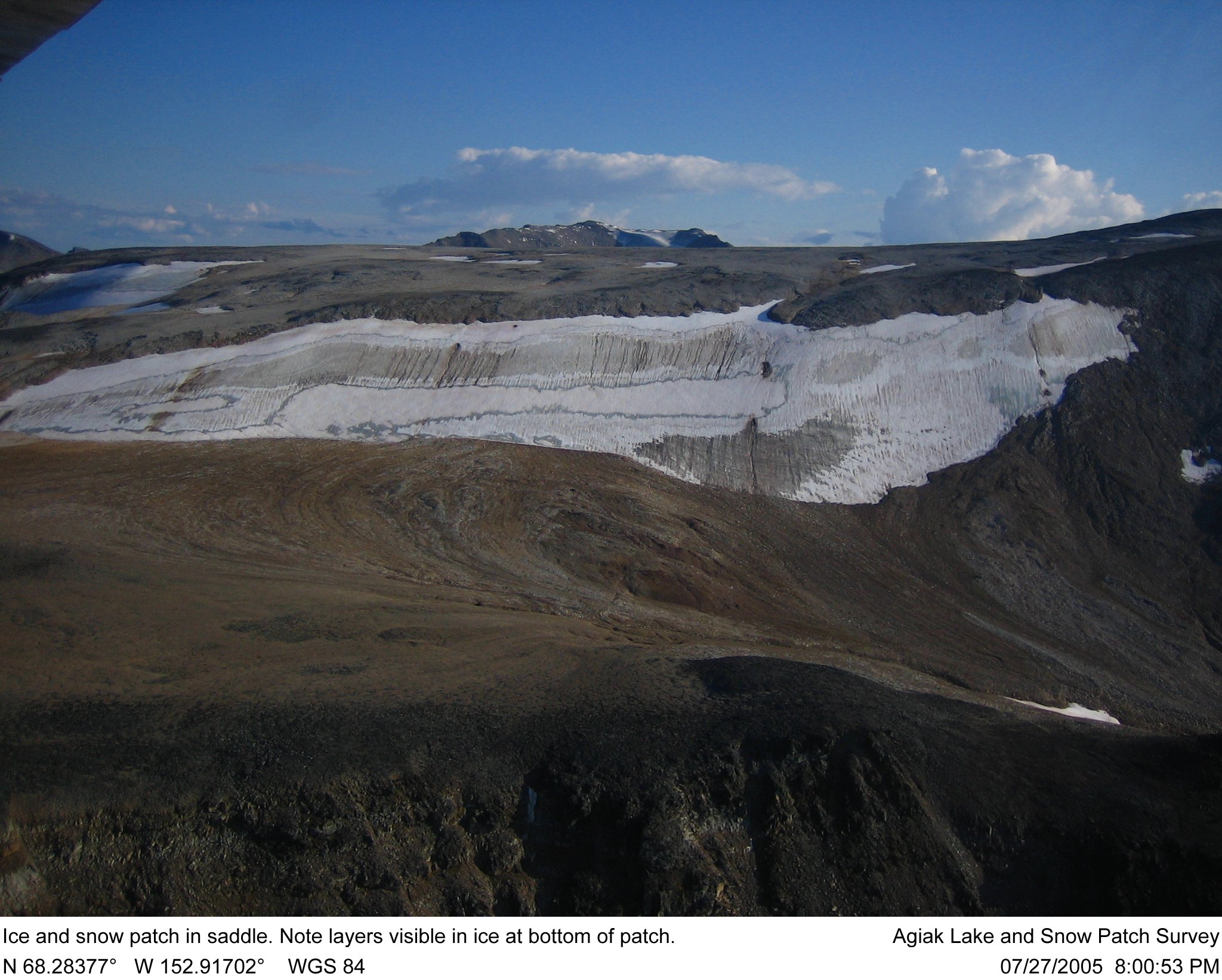 A snow patch in Gates of the Arctic National Park, central Brooks Range, Alaska. Photo taken in July 2005