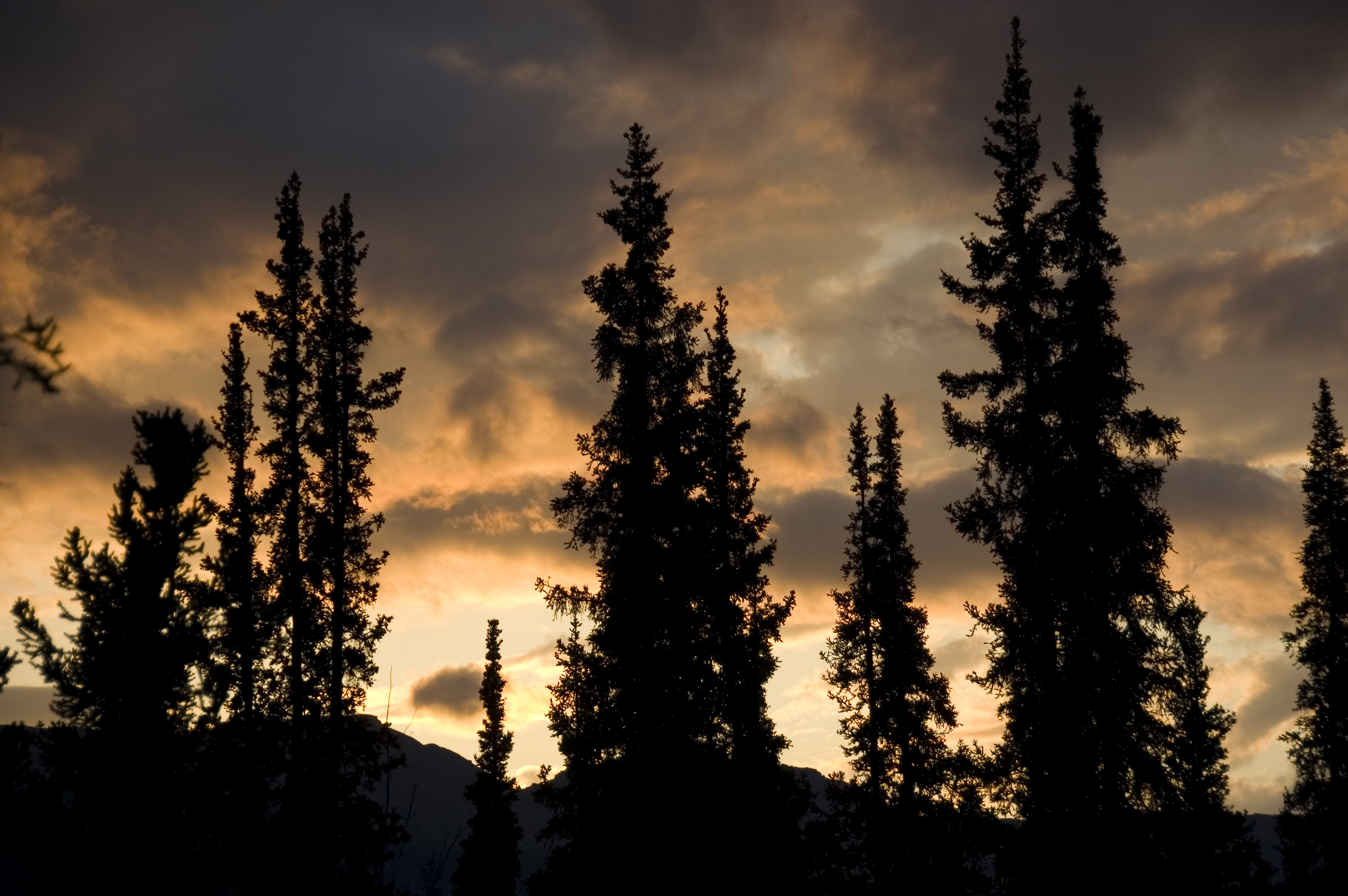 Midnight sun near the Marion Creek campground off the Dalton Highway in Alaska.