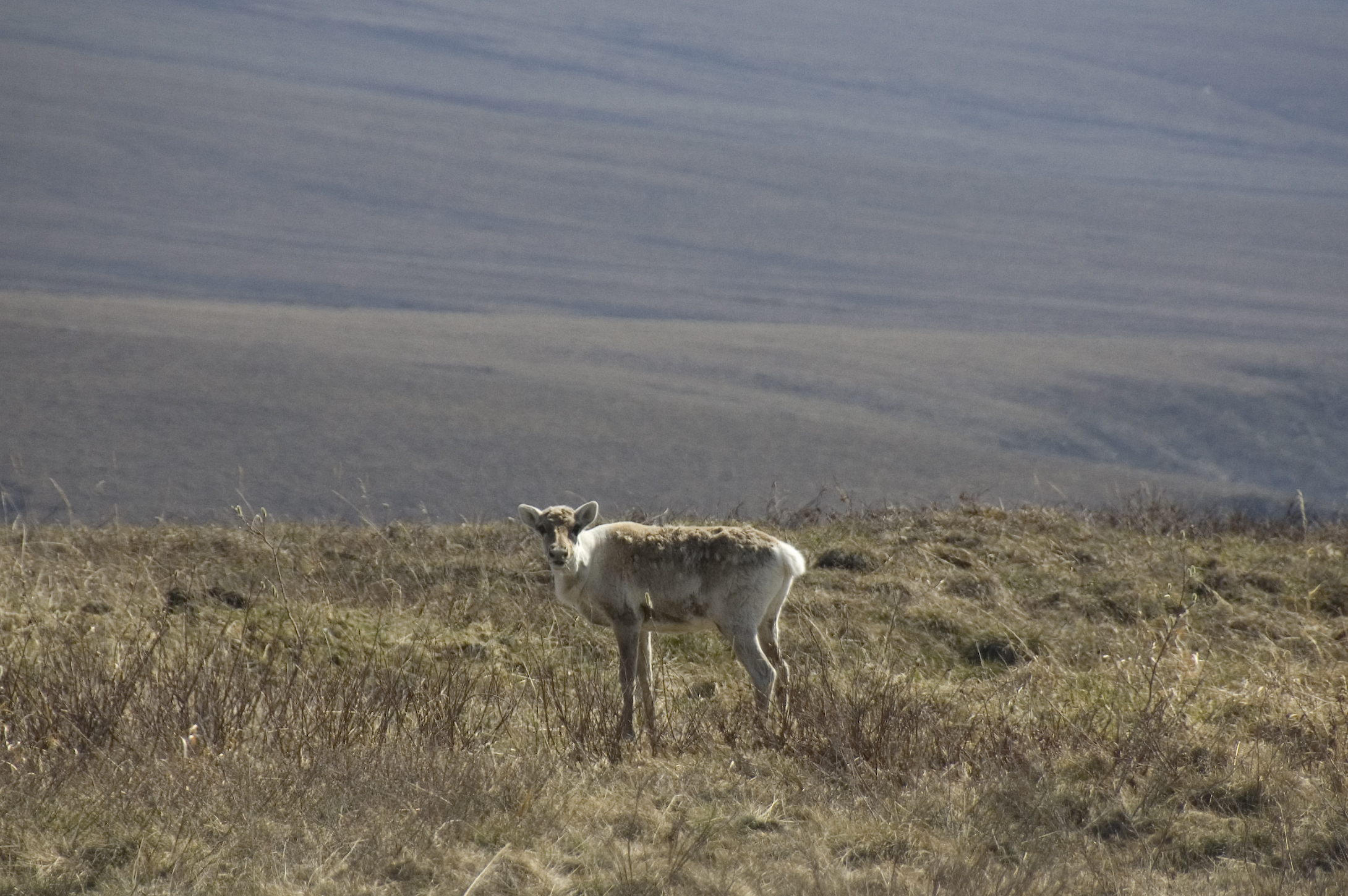A caribou north on the North Slope on the Dalton Highway in Alaska.