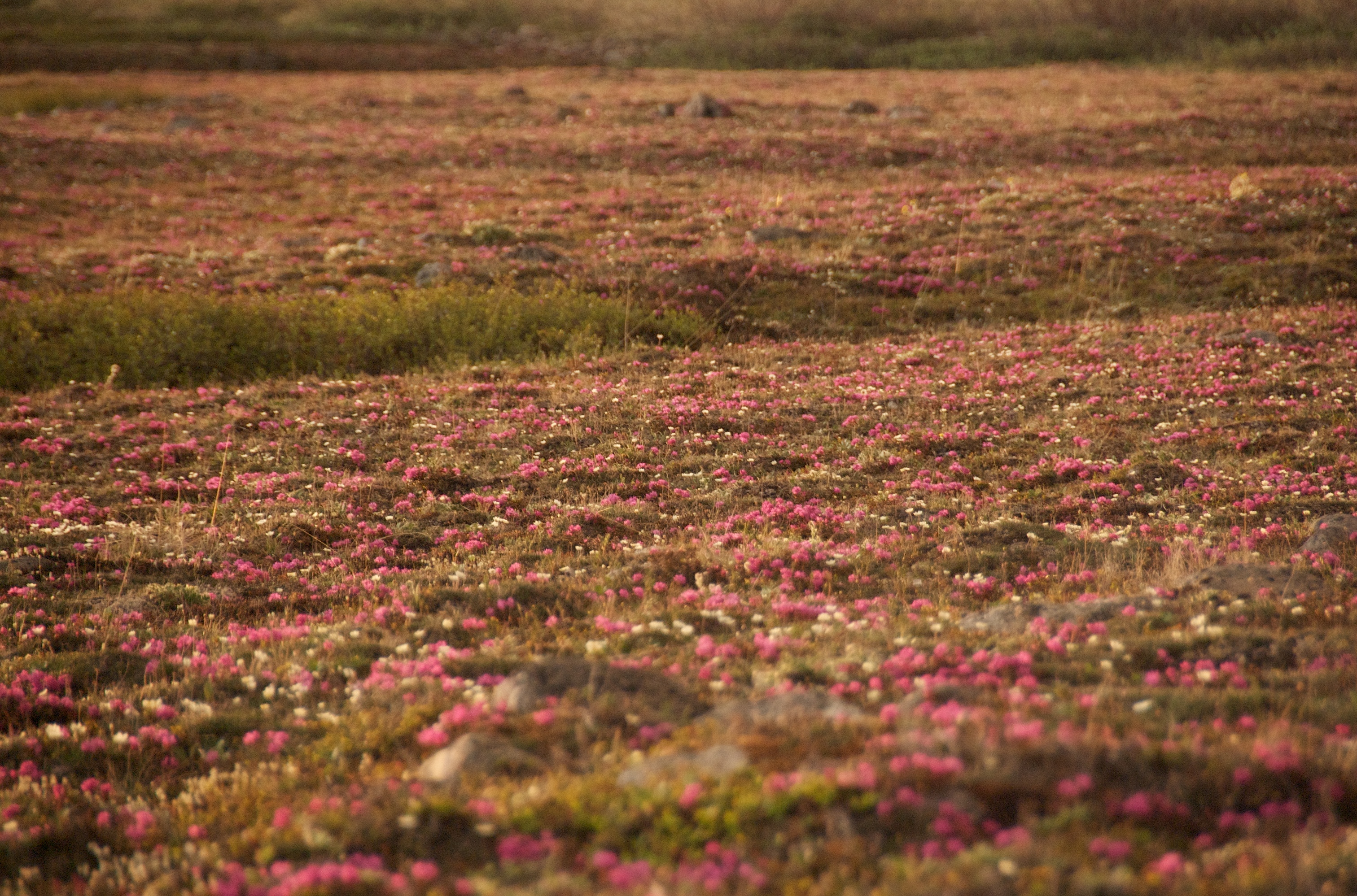 Purple wildflowers at Galbraith Lake on the north side of Atigun Pass on the Dalton Highway in the Brooks Range, Alaska.