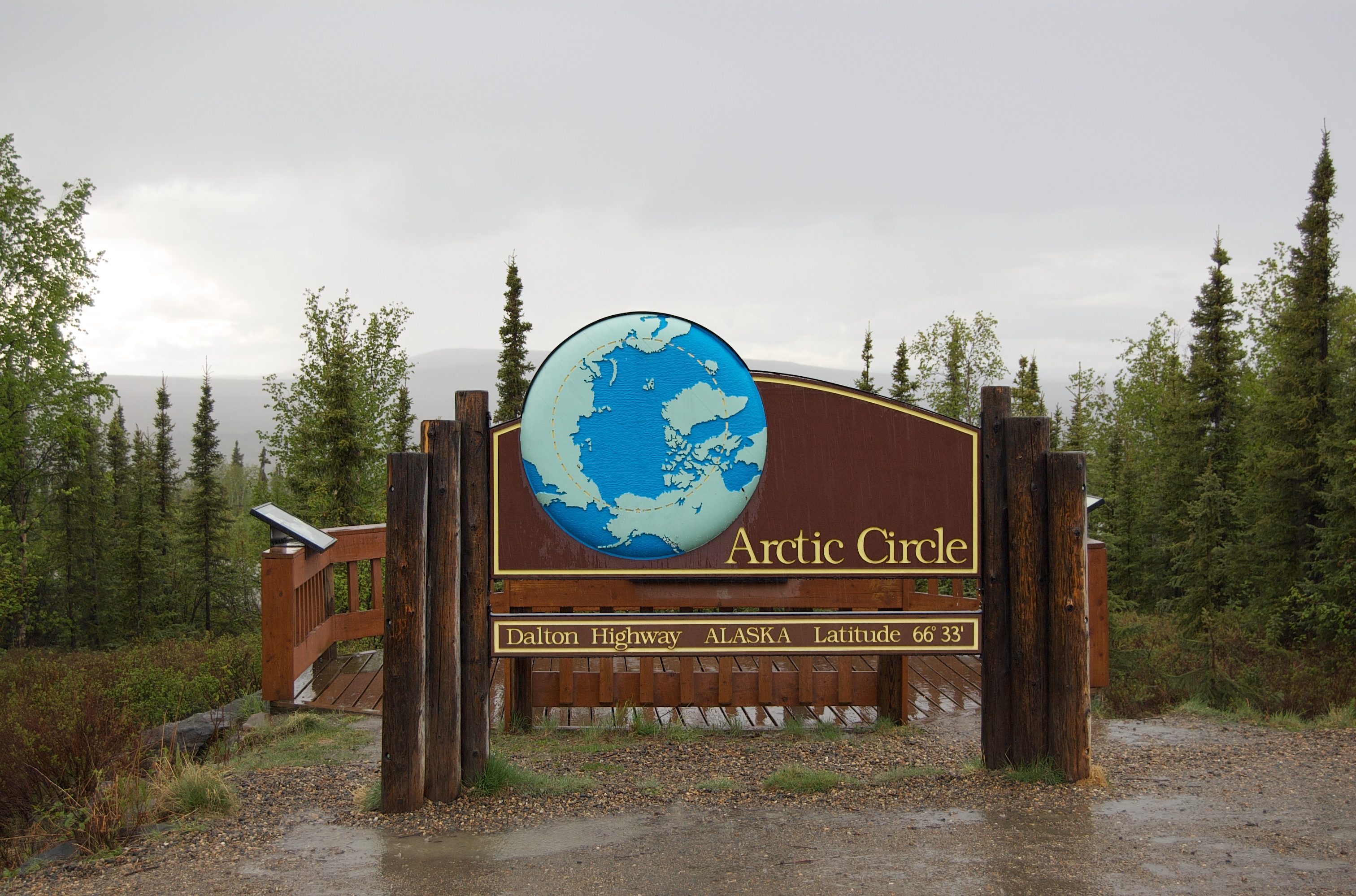 The Arctic Circle sign at the Arctic Circle campground on the Dalton Highway in Alaska.