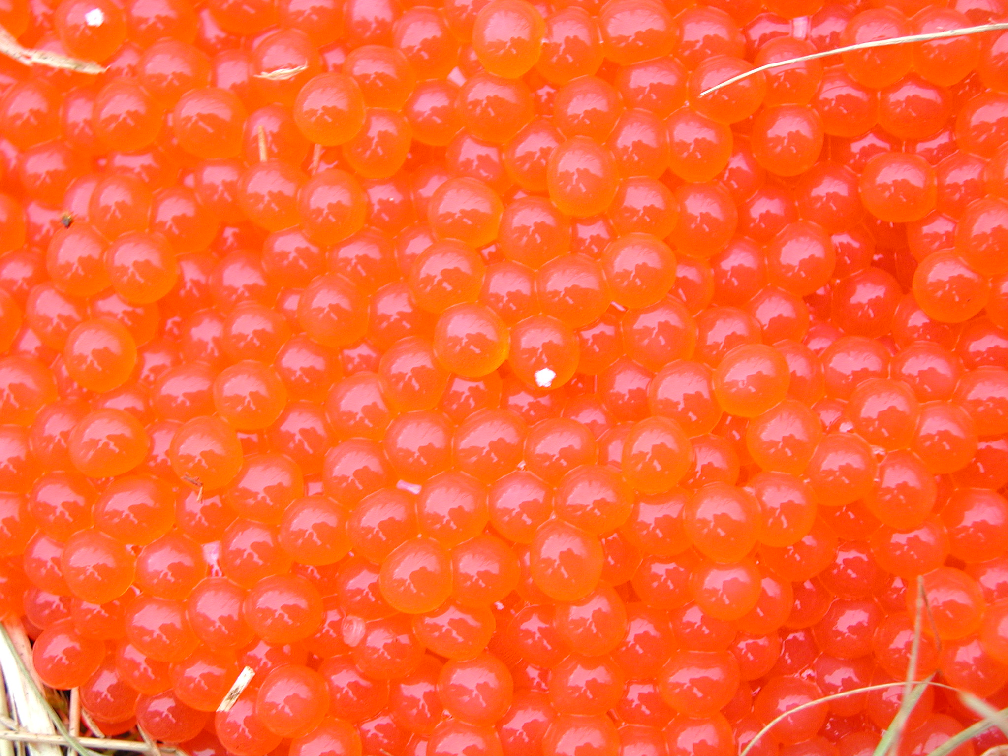 People reflected in salmon eggs. Southeastern St. Lawrence Island, Alaska.
