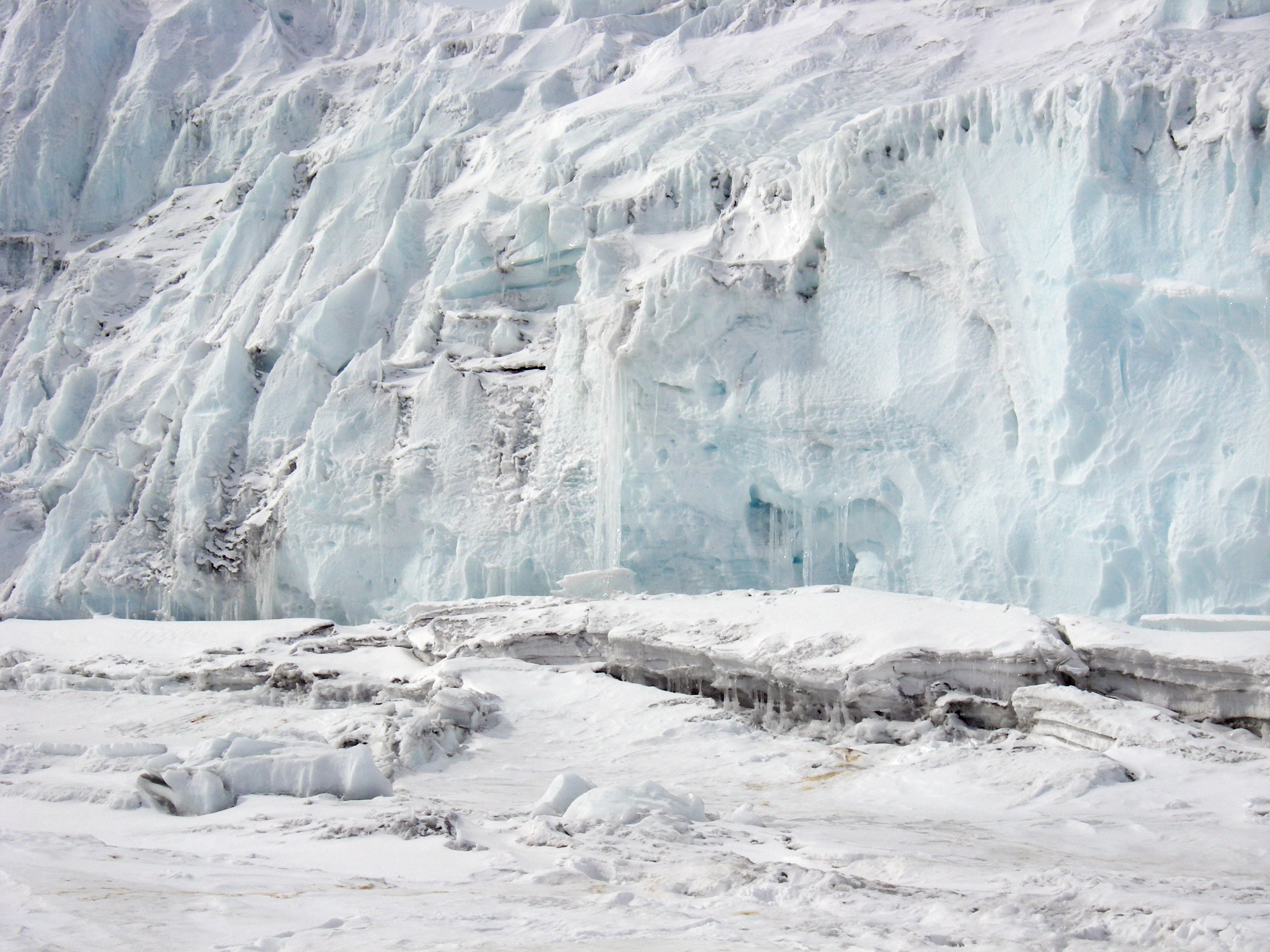 Ann Linsley: "Glacier edge meets the sea ice. The walls of ice made spectacular formations and the colors were equally amazing." Near Barne Glacier on the sea ice of McMurdo Sound, Antarctica.