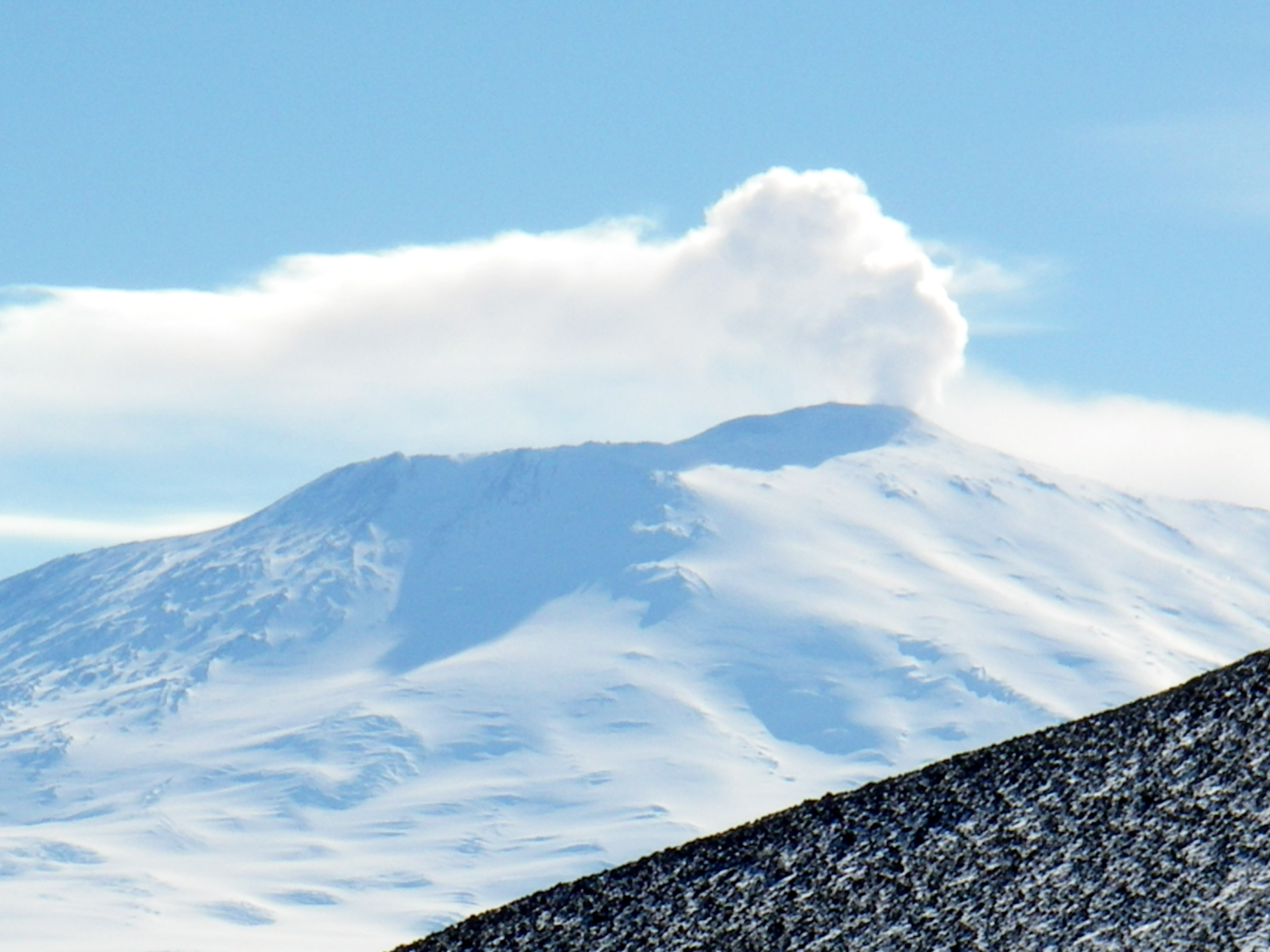 Mt. Erebus smoking, looking west from Cape Armitage, Ross Island, Antarctica.
