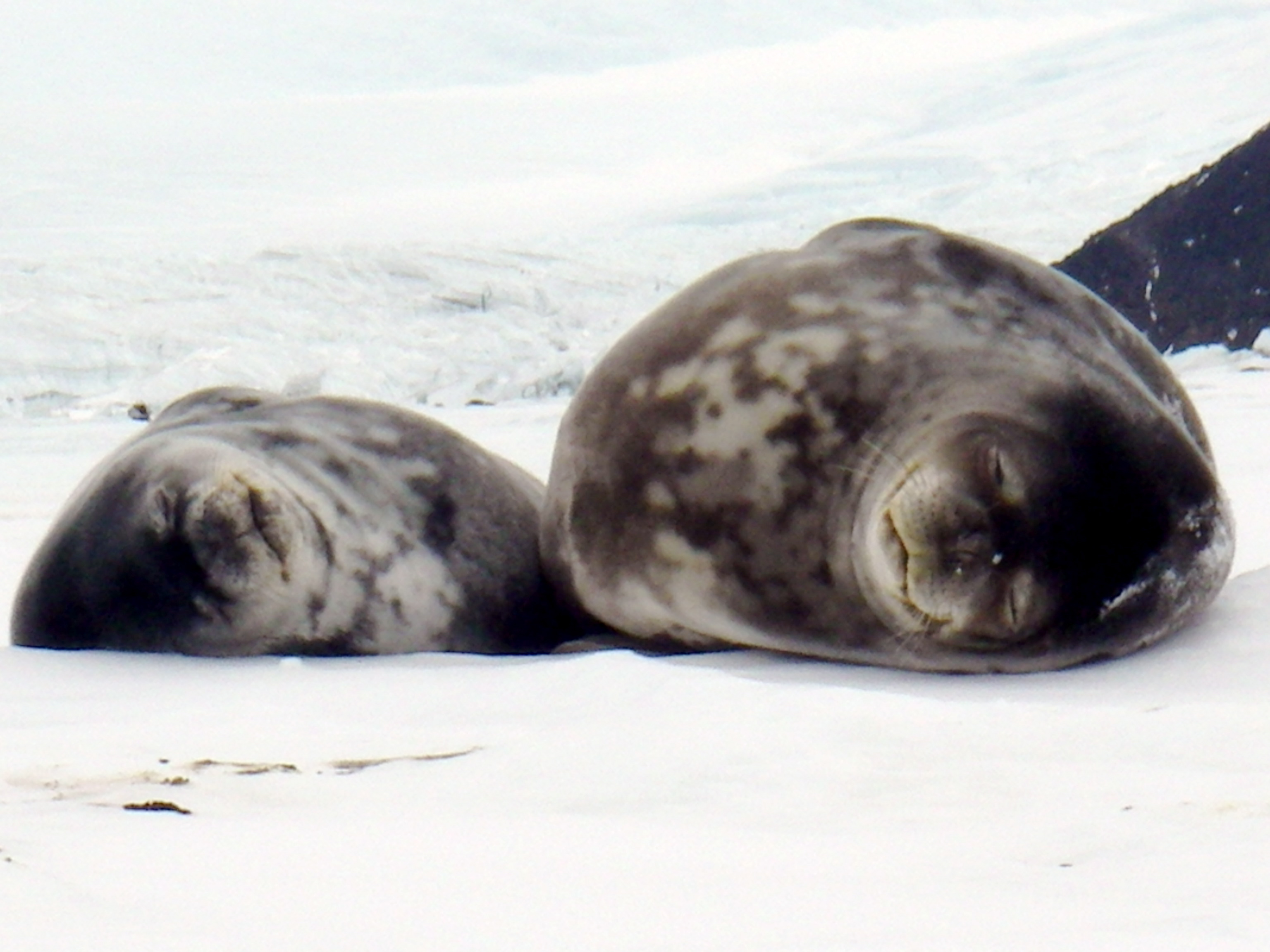 A mother and pup Weddell seal on the sea ice near Razorback Island, Antarctica.