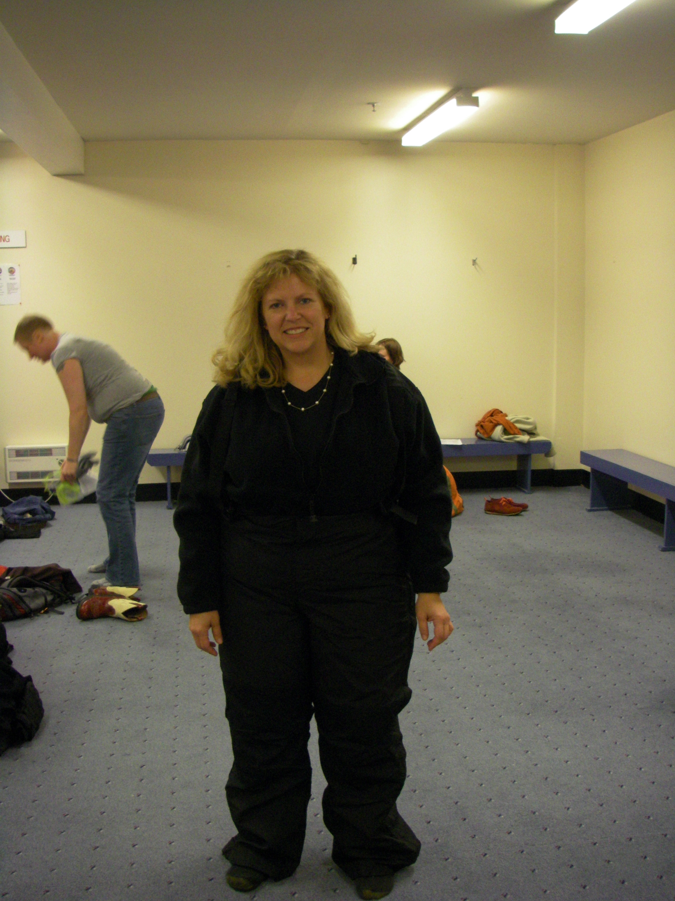 Ann Linsley: "Nothing fits! Too big, too long. We had to try on all of our clothes issued and exchange for better fitting ones." Antarctic Support Center, Christchurch, New Zealand.