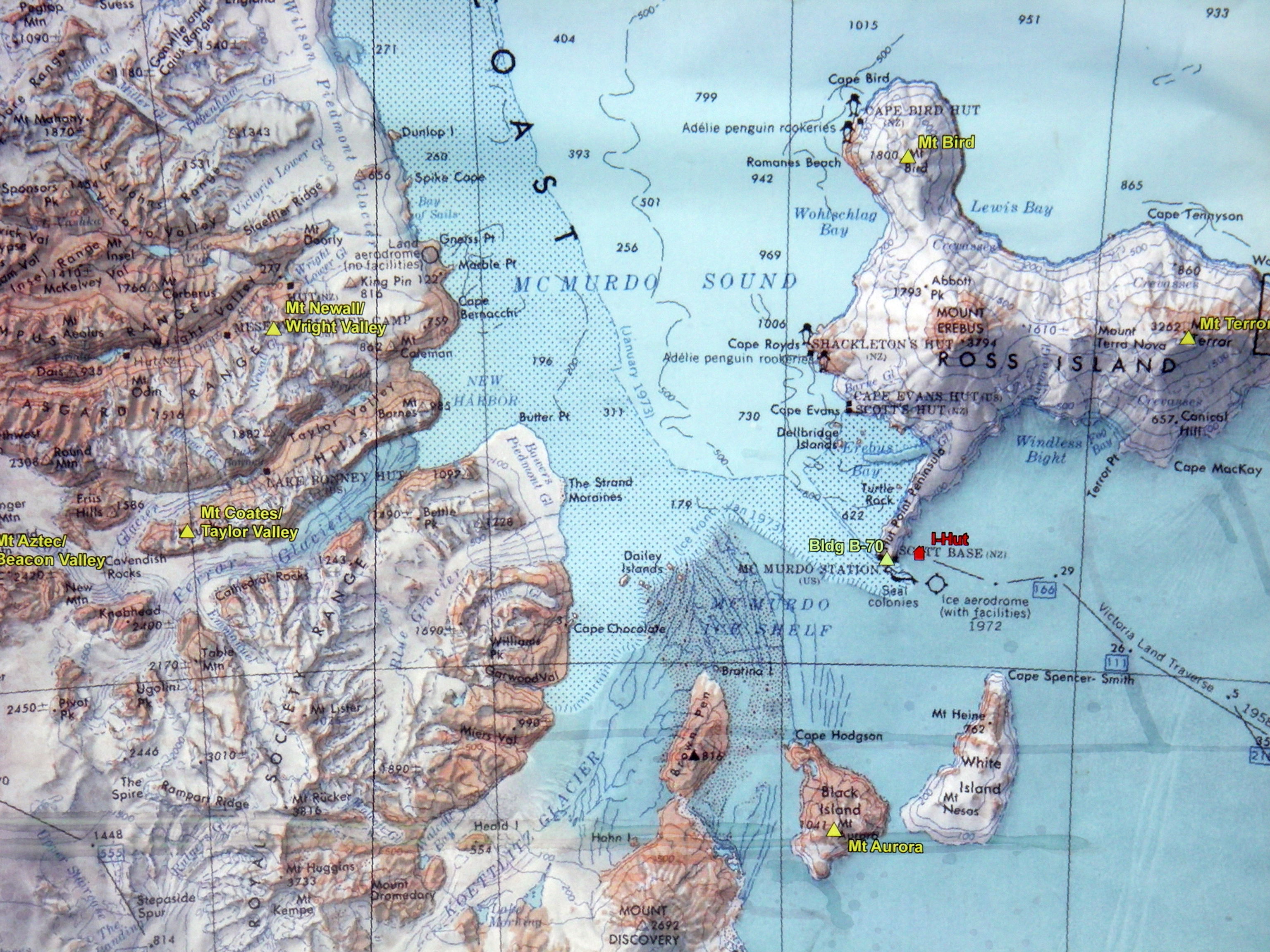 Map of Ross Island and placement of McMurdo Station at the tip of the peninsula.