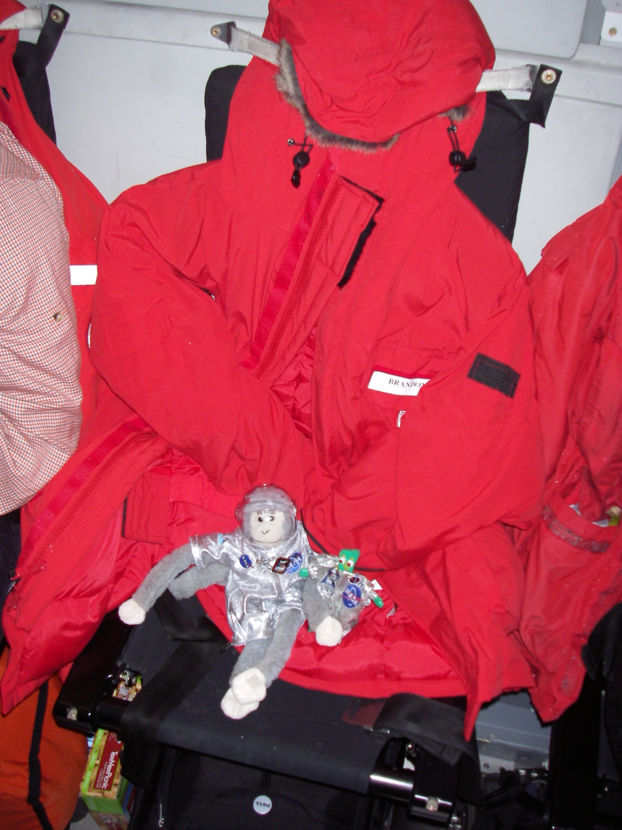 Gumby and Ms. Baker enjoying the flight to Antarctica on the C-17. Somewhere over the extreme South Pacific Ocean.