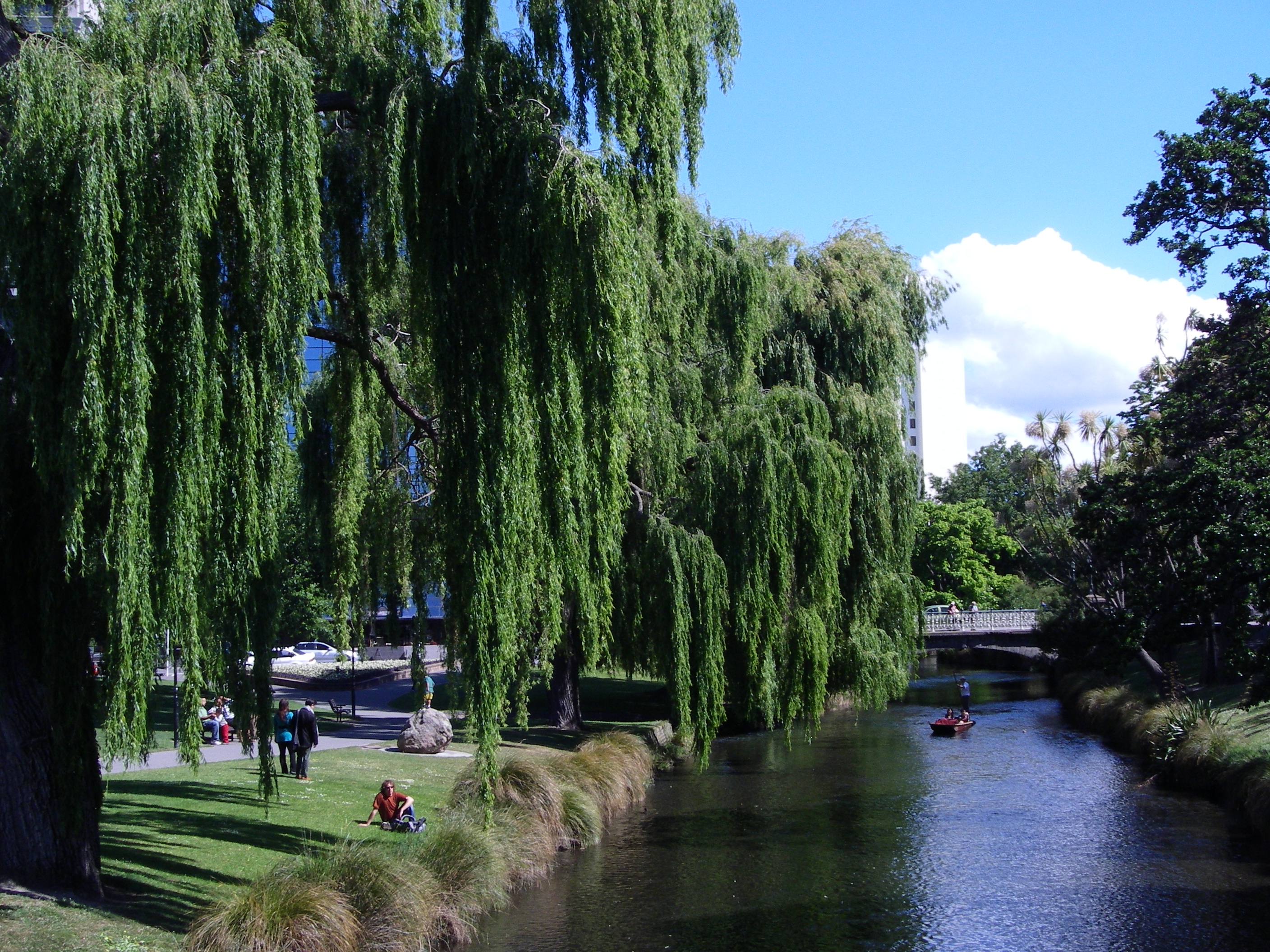 Punting rides (riding in small boats) along the Avon River in Christchurch. Christchurch, New Zealand.