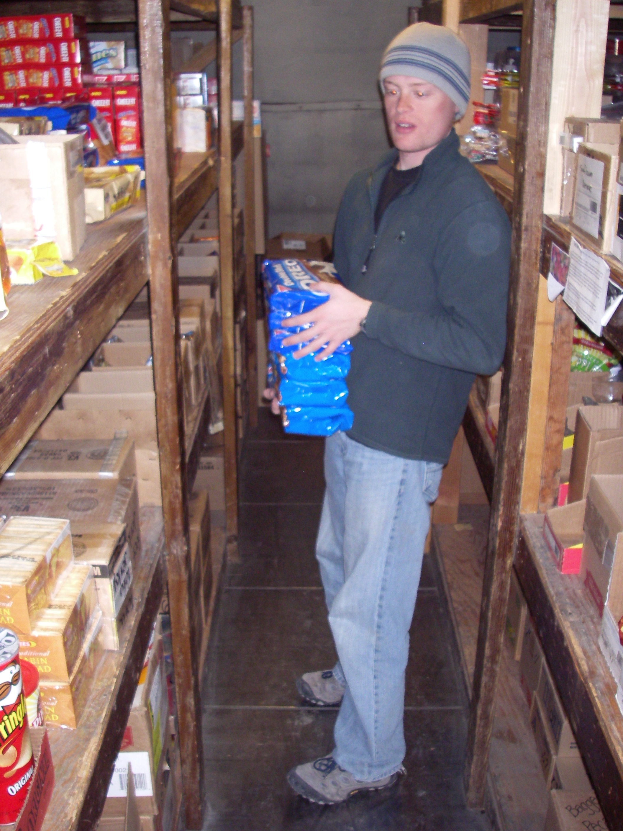 Knut Christianson stocking up on the essentials, Chips Ahoy! McMurdo Station, Antarctica.