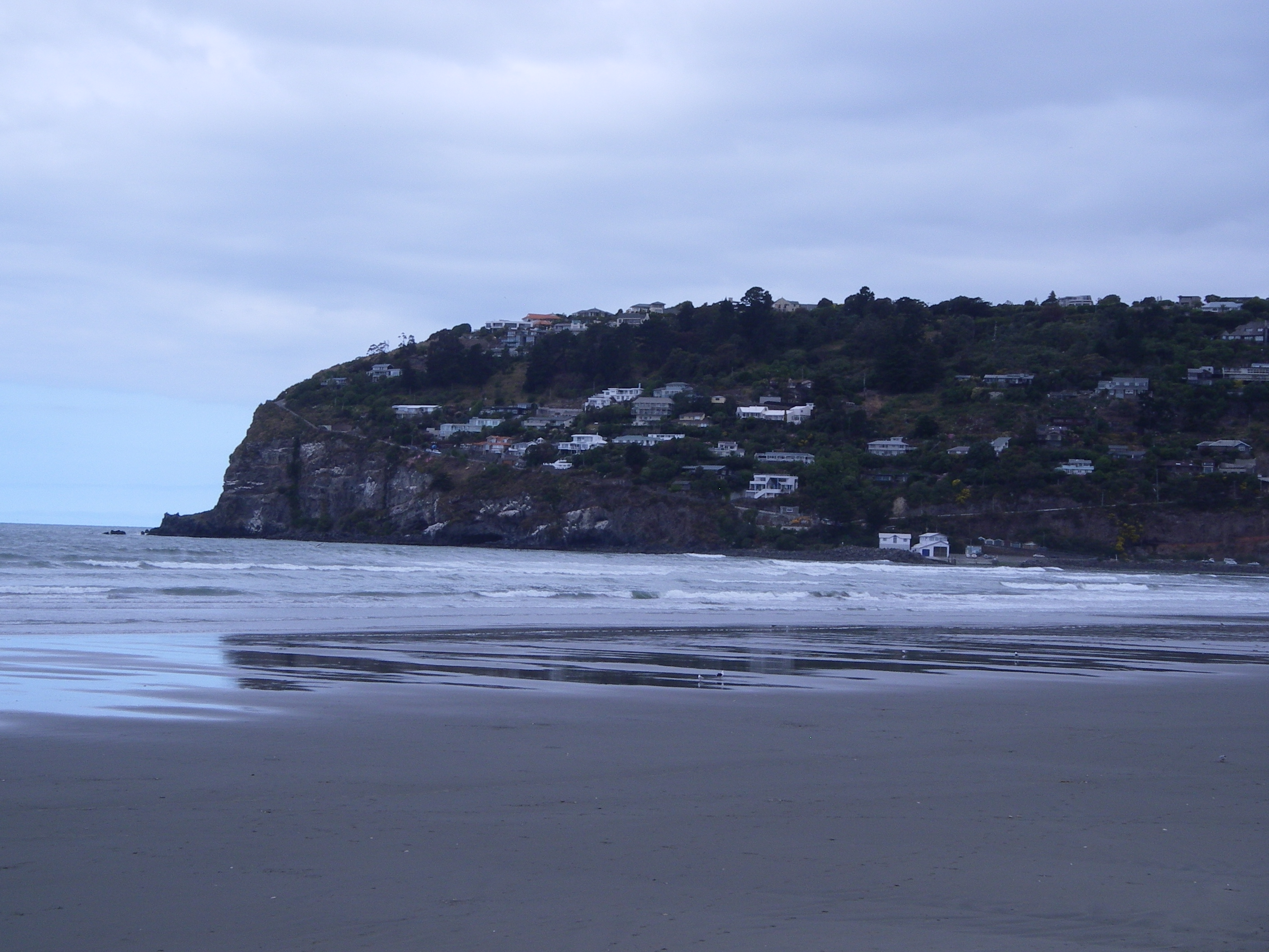 The coast of the Pacific Ocean looking across the Lyttelton Harbor inlet. Lyttelton Harbor, New Zealand.