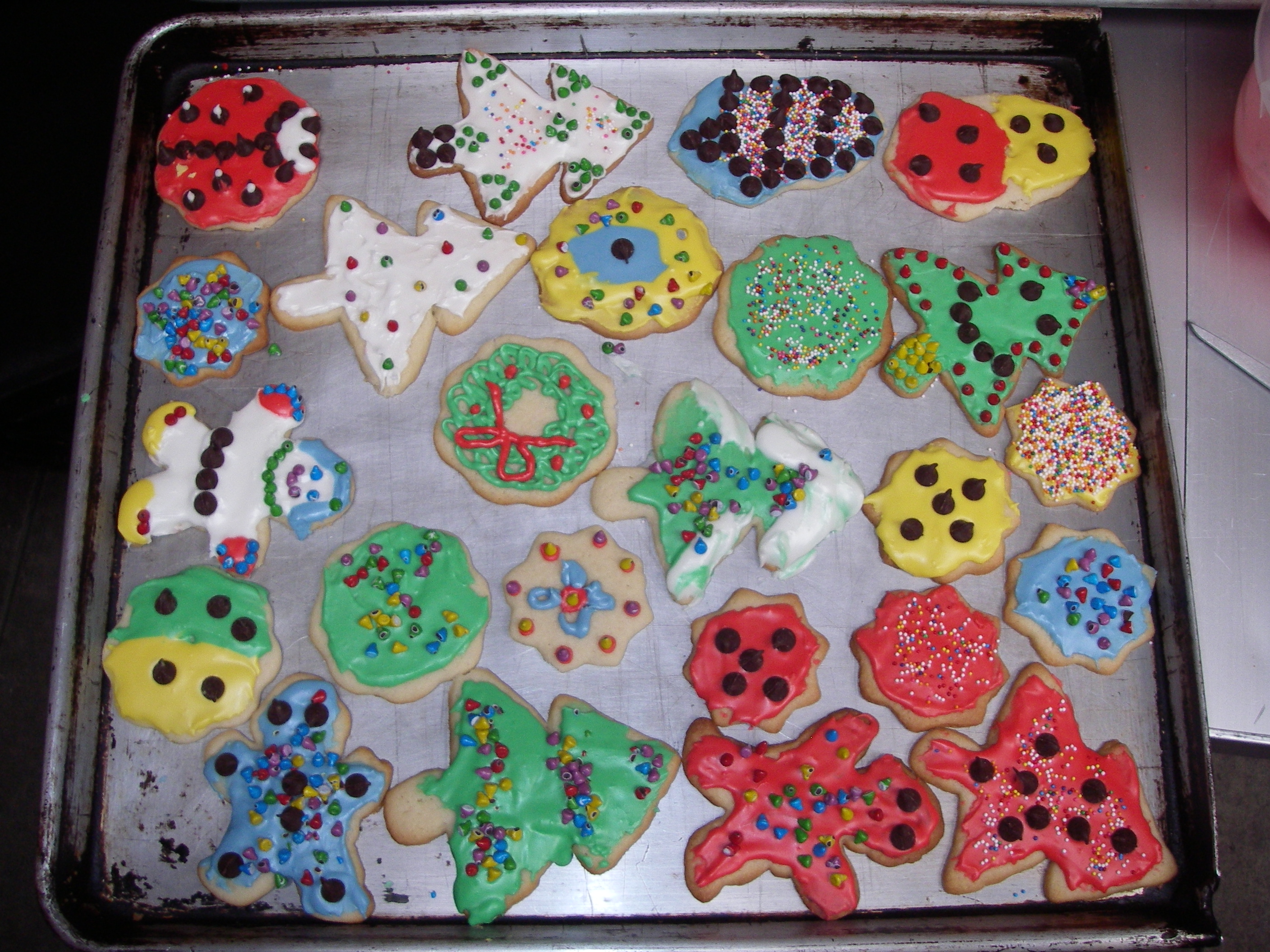 A tray full of decorated cookies for the holiday dinner. WAIS Divide (West Antarctic Ice Sheet), Antarctica.